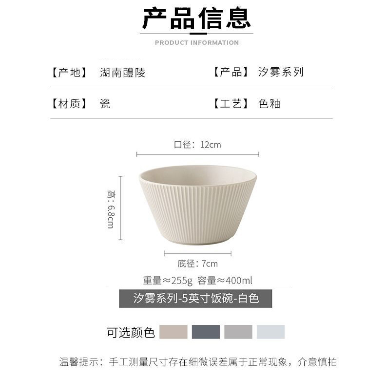 | Color | Serie xiwu - tazón de arroz de 5 pulgadas - blanco, serie xiwu - tazón de arroz de 5 pulgadas - beige, serie xiwu - tazón de arroz de 5 pulgadas - gris, serie xiwu - tazón de arroz de 5 pulgadas - caqui |
