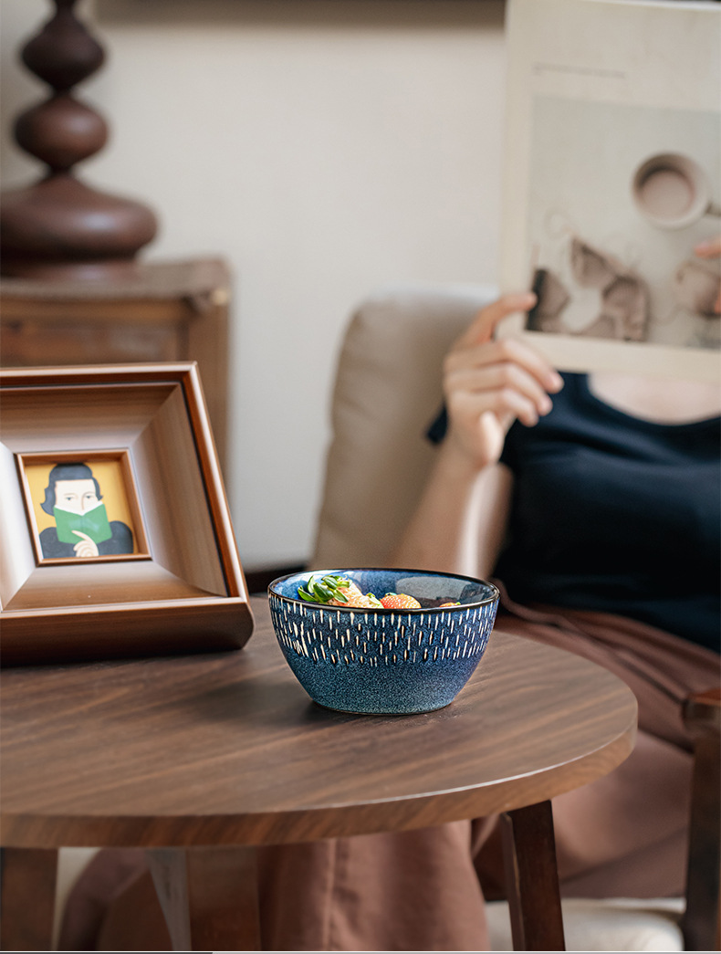 INS Nórdico creativo patrón de piedra tazón de cerámica Hogar personalizado tazón de sopa tazón de fideos instantáneos con estante de madera tazón de ensalada de frutas vajilla