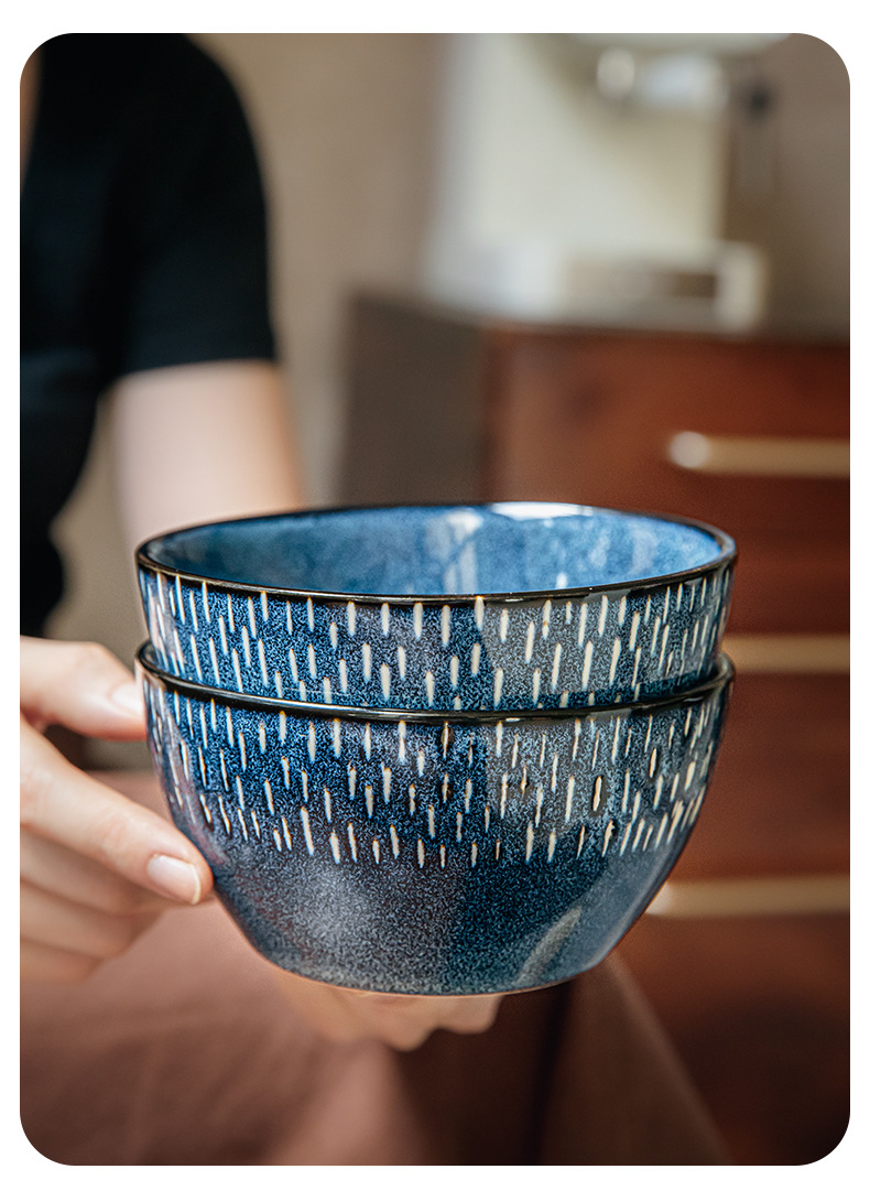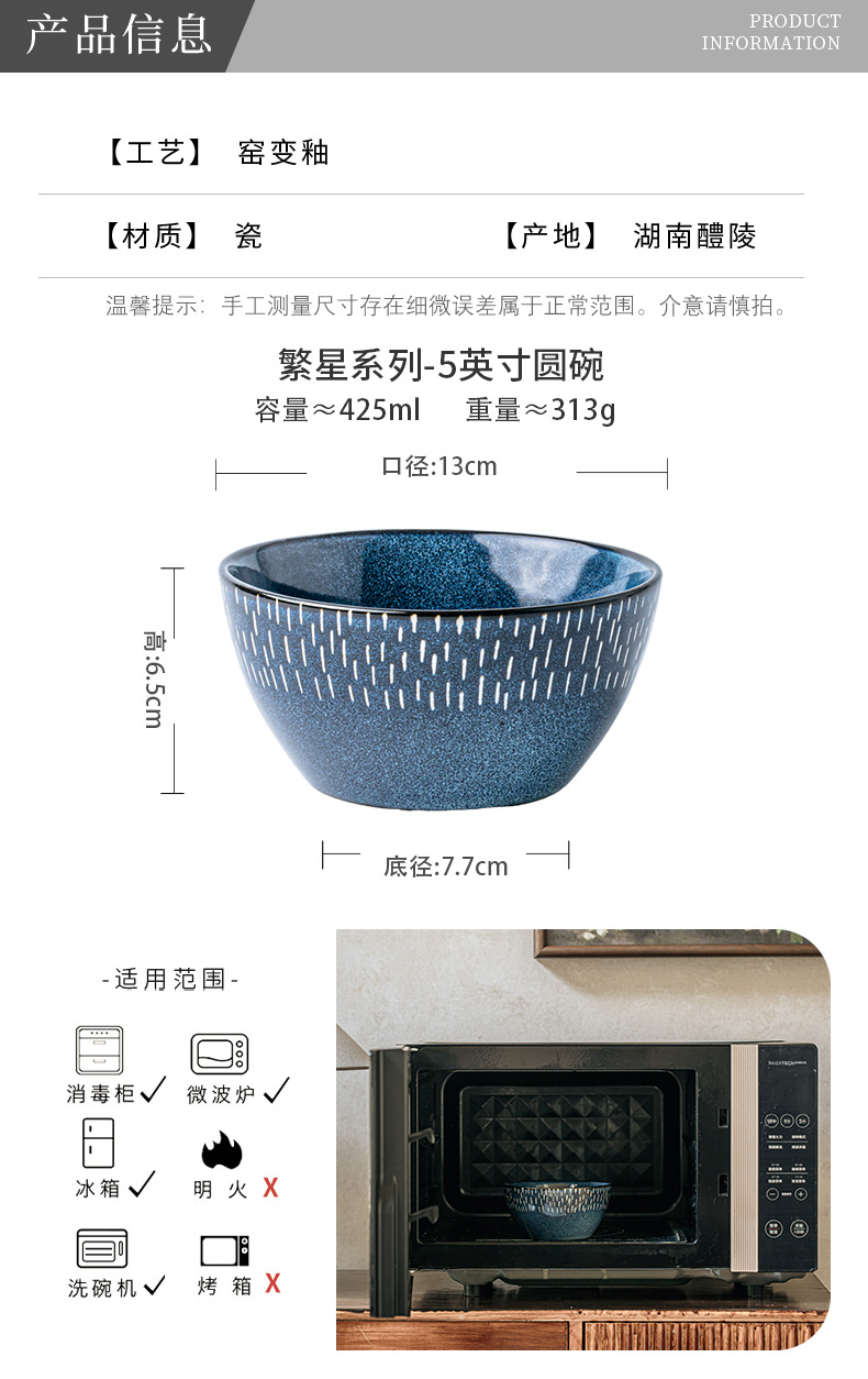 Tacos de arroz de exportación de comercio exterior, horno estrella de 5 pulgadas, tazón de cerámica pintada a mano, tazón de arroz grueso