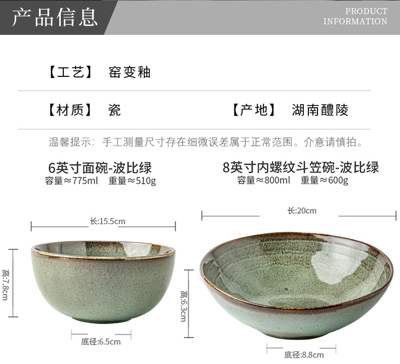 | Color | Tazón de sombrero con hilo interior de 8 pulgadas - Verde bobbi, tazón de fideos de 6 pulgadas - verde Bobbi |
