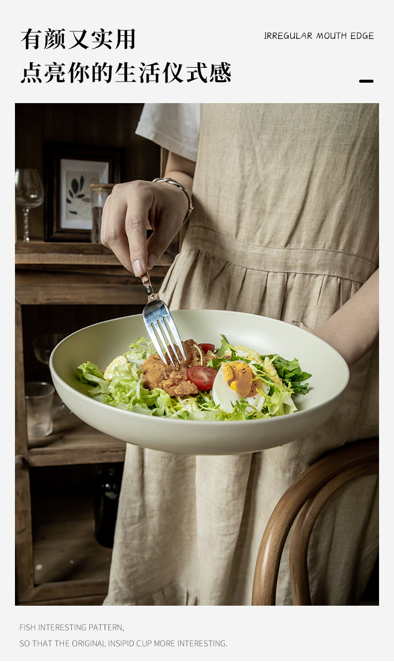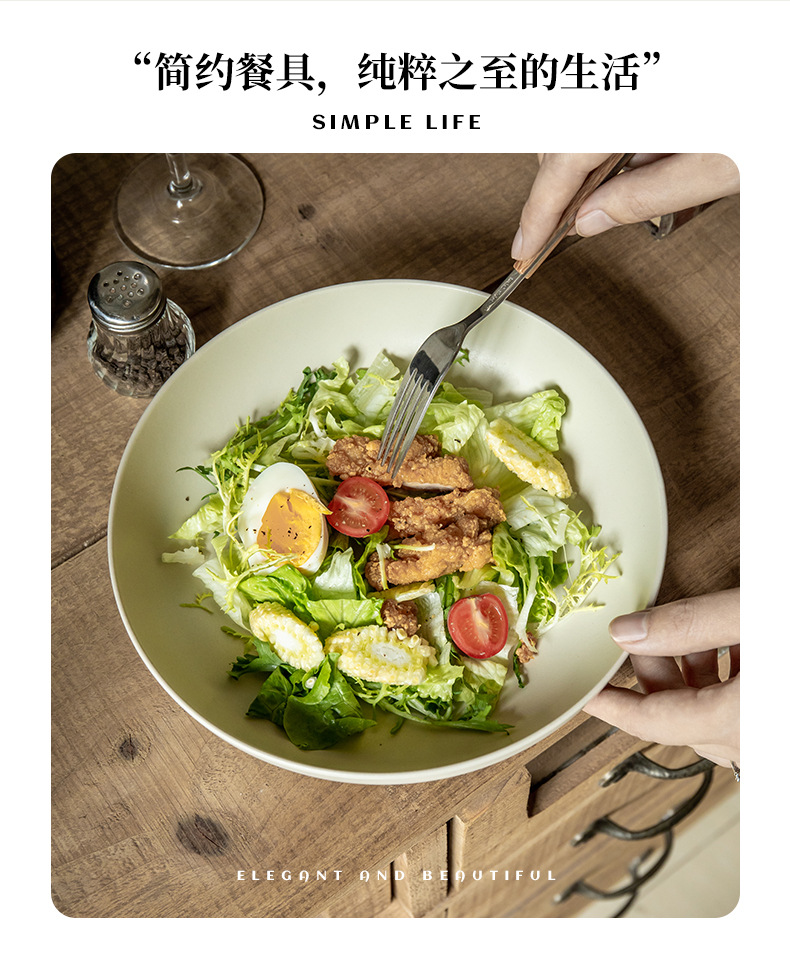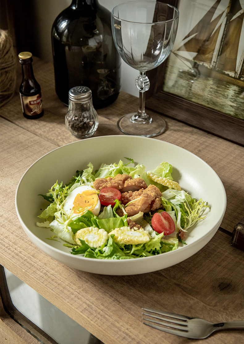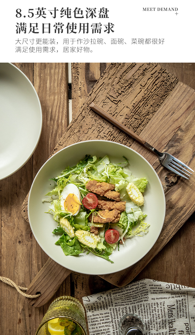 Personalidad simple color sólido profundo platos de cerámica características domésticas de alto valor de color nicho nórdico exportación transfronteriza platos de ensalada