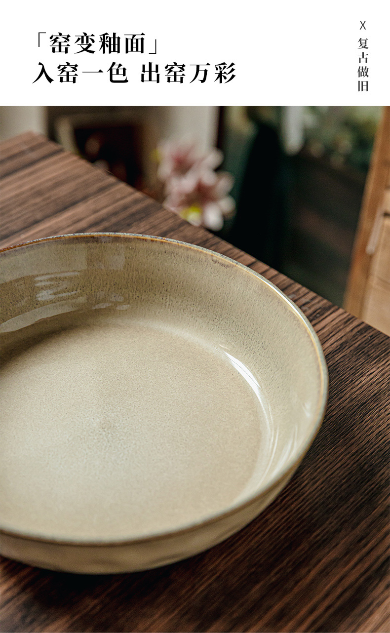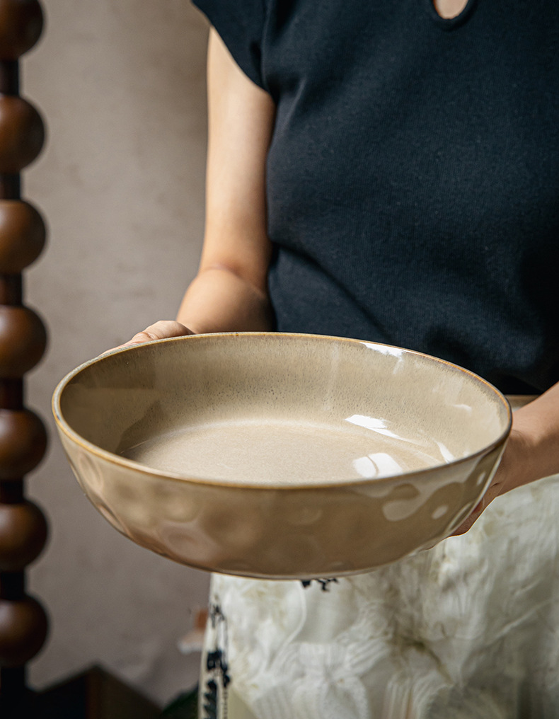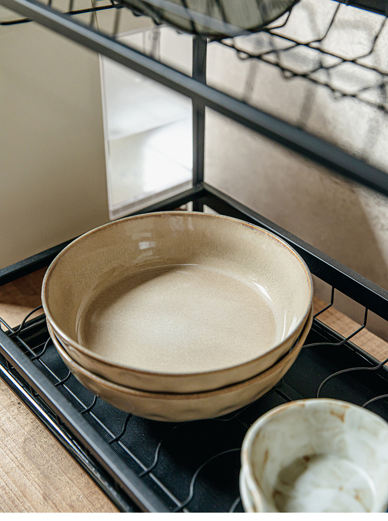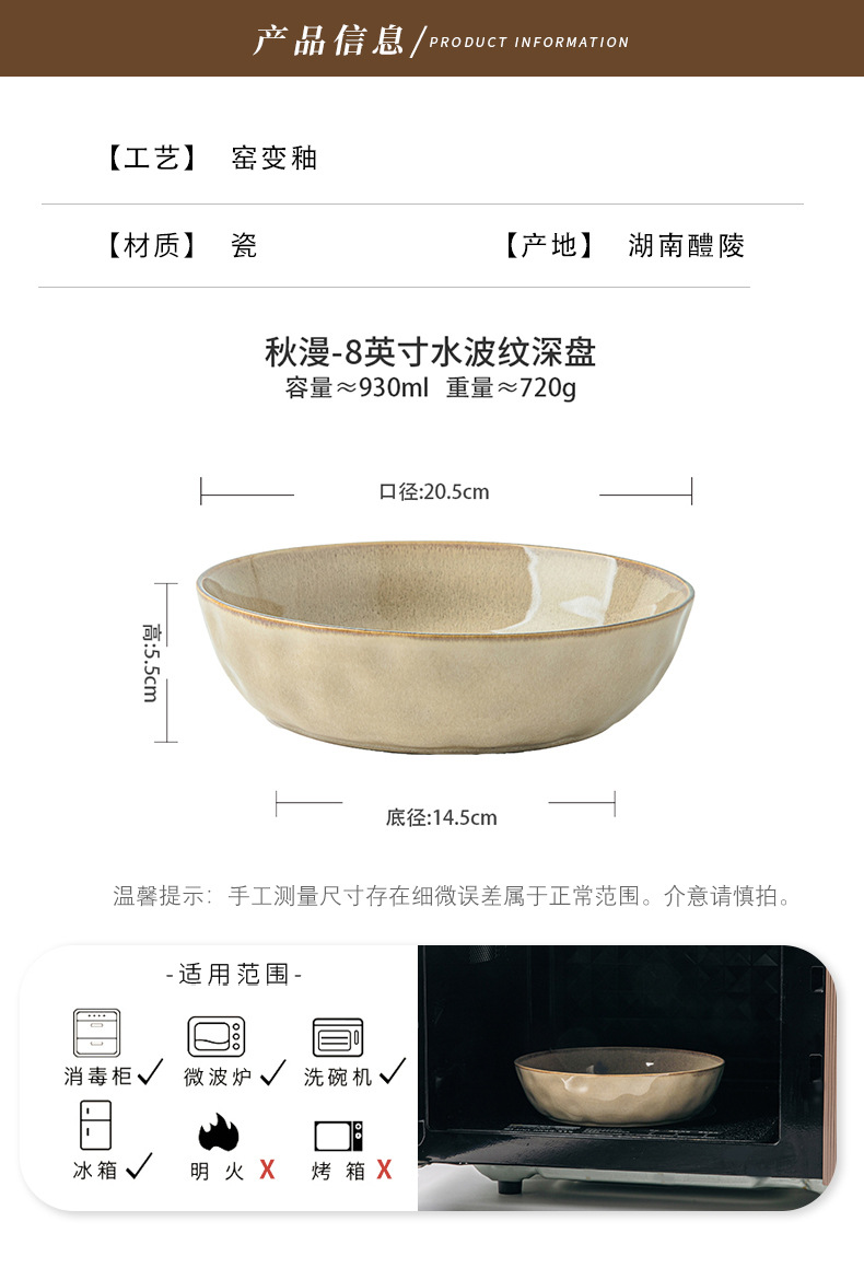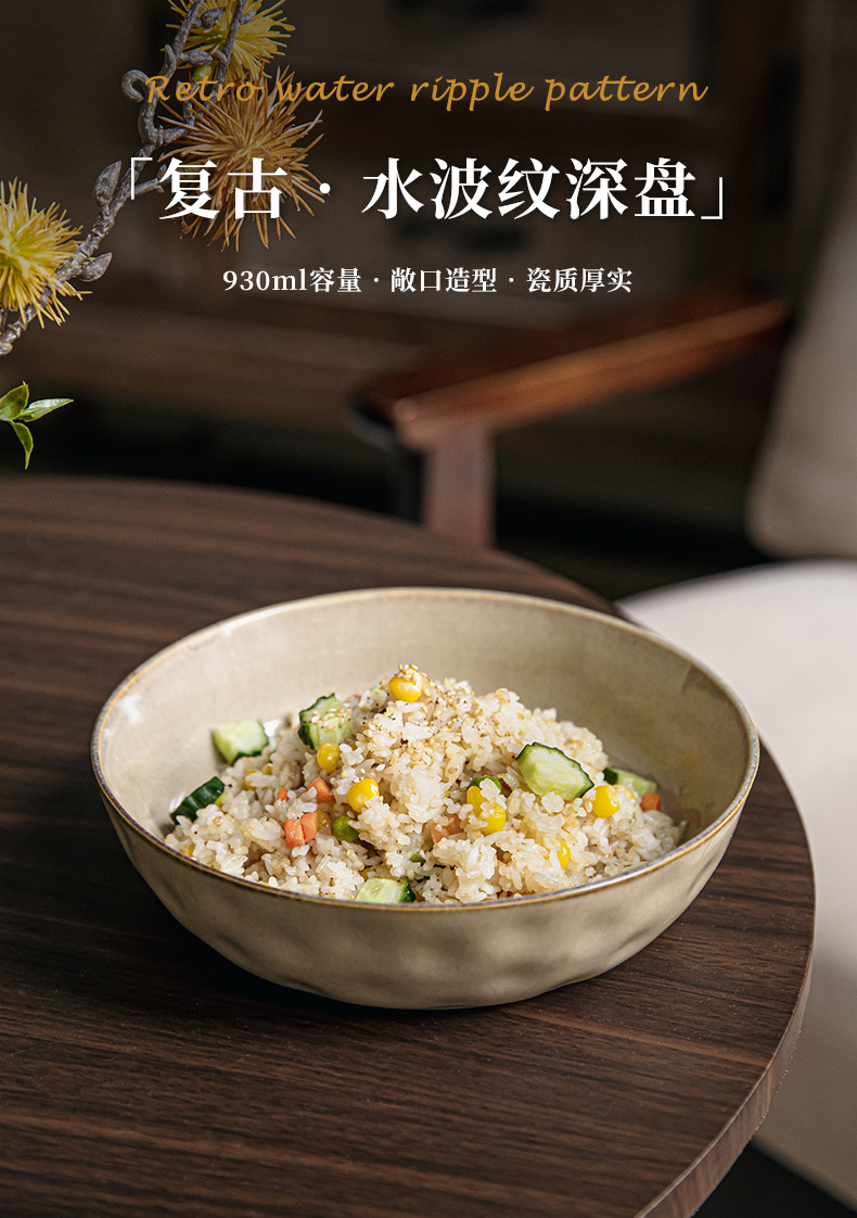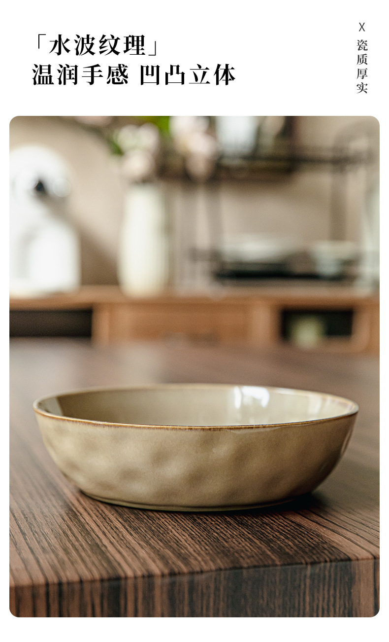 Plato de plato grande con patrón de agua retro Plato profundo de 8 pulgadas Plato de sopa de cerámica grande Exportación transfronteriza Plato de cocina de alto valor para restaurantes