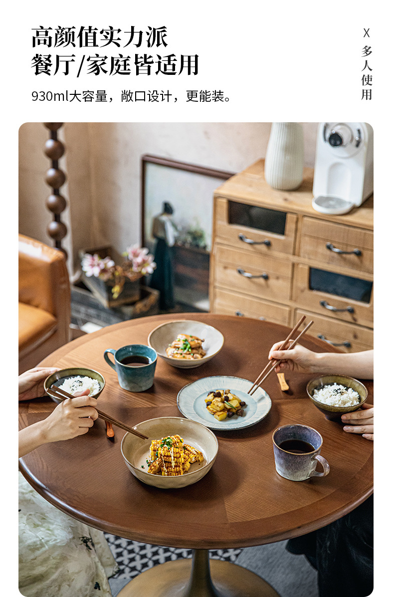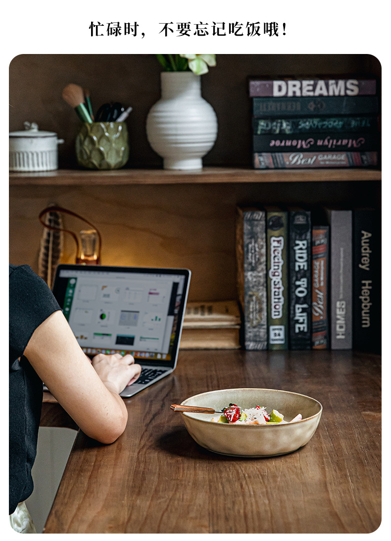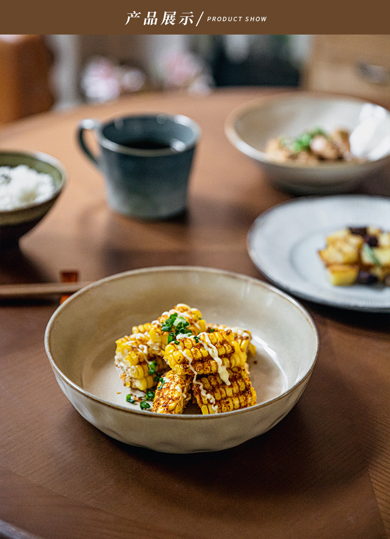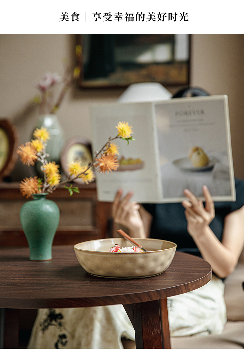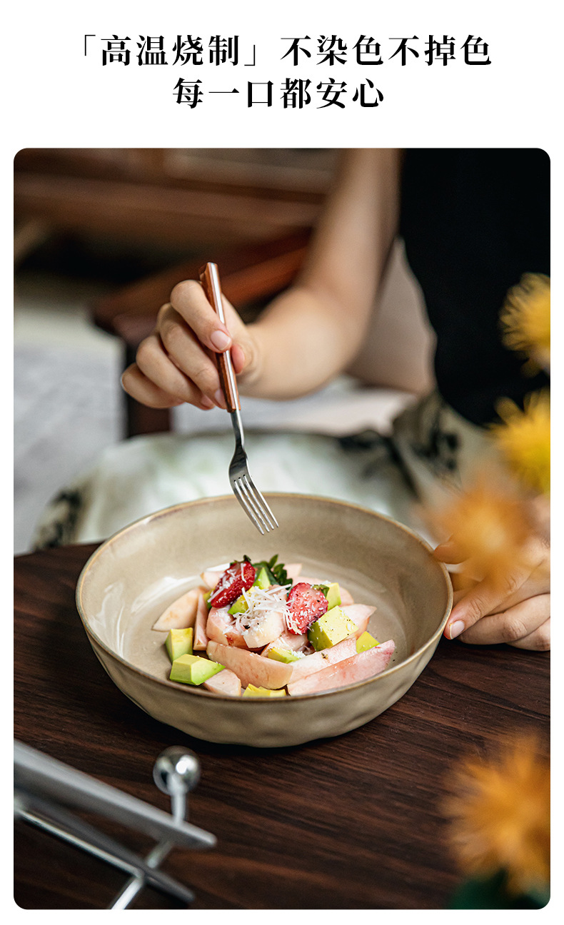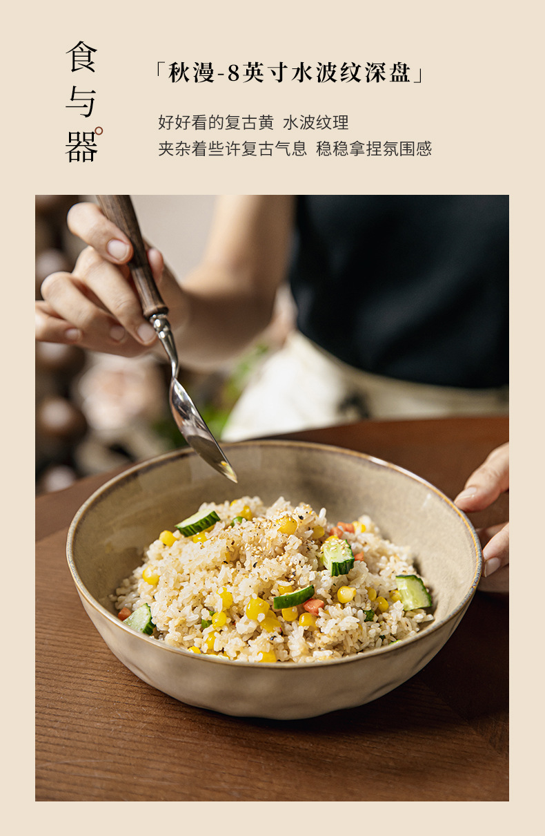 Plato de plato grande con patrón de agua retro Plato profundo de 8 pulgadas Plato de sopa de cerámica grande Exportación transfronteriza Plato de cocina de alto valor para restaurantes