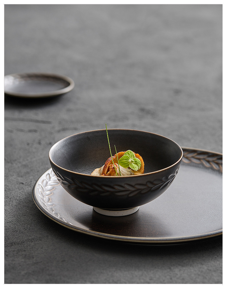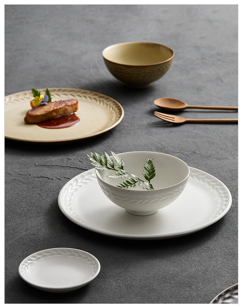 Pastoral simple ins estilo de cerámica de alta apariencia vajilla para el hogar tazón plato combinación plato tazón de arroz Gran Tazón de sopa