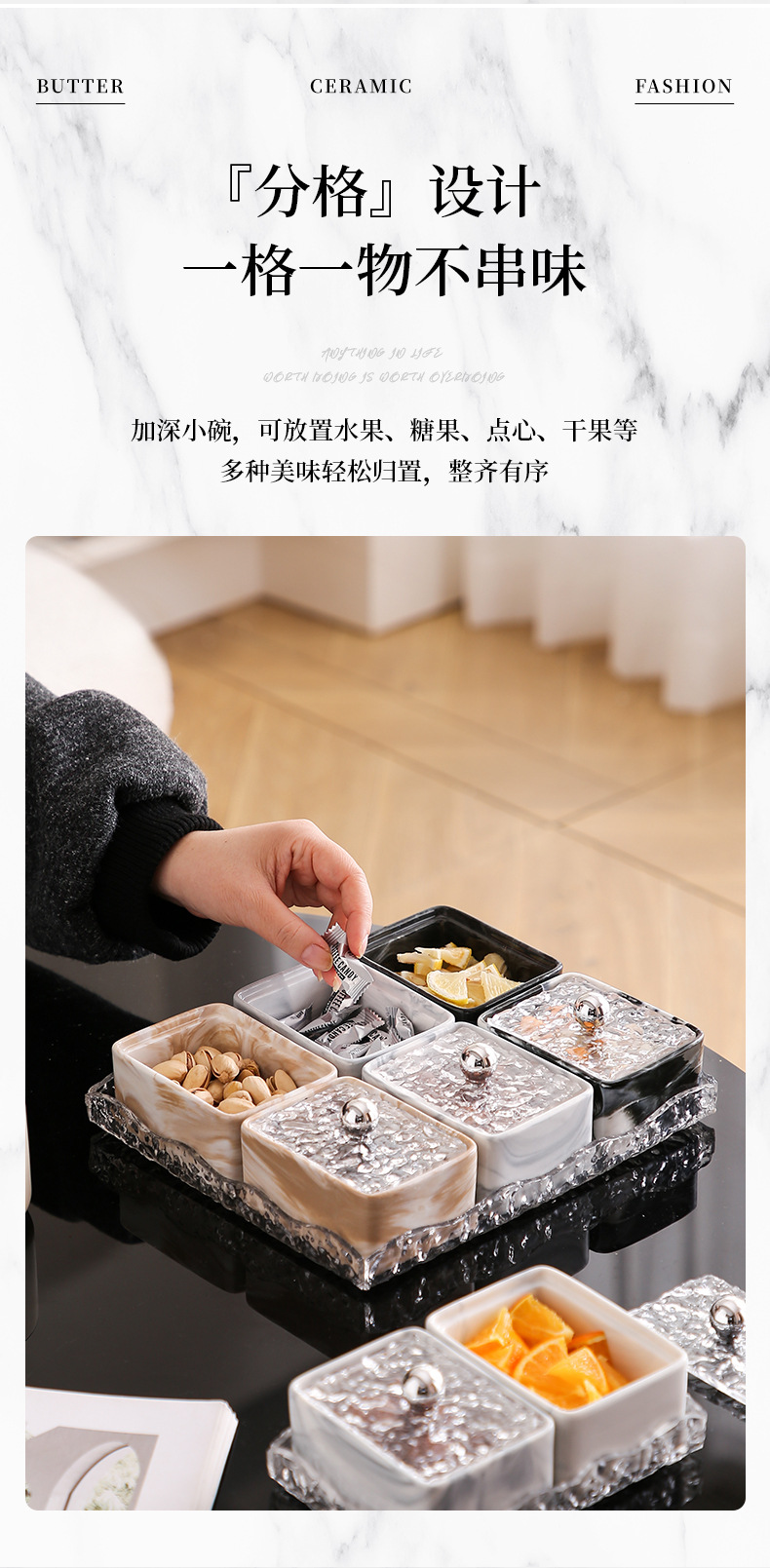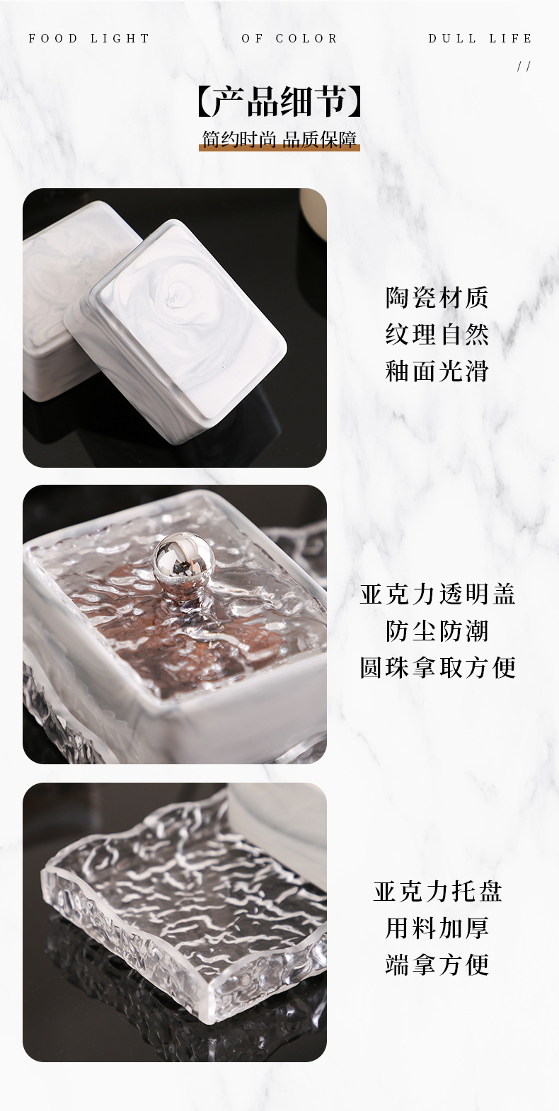 | Estilo | Simple y moderno Caja de almacenamiento dividida en mármol |