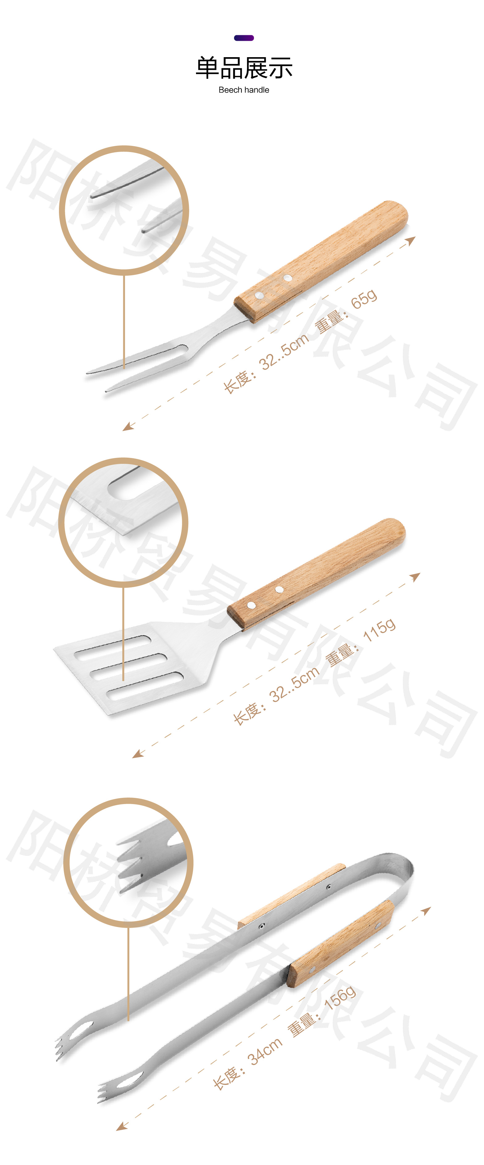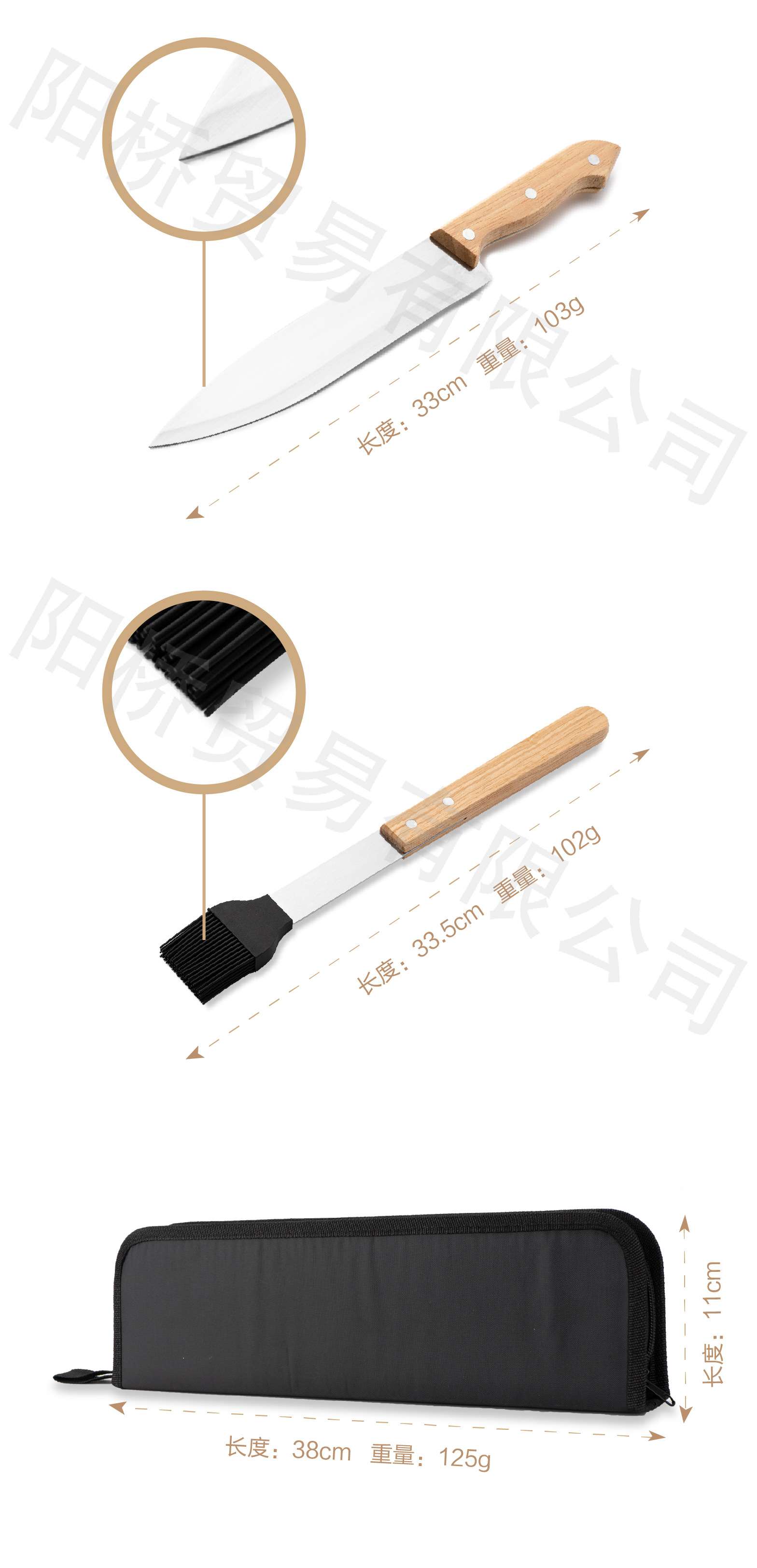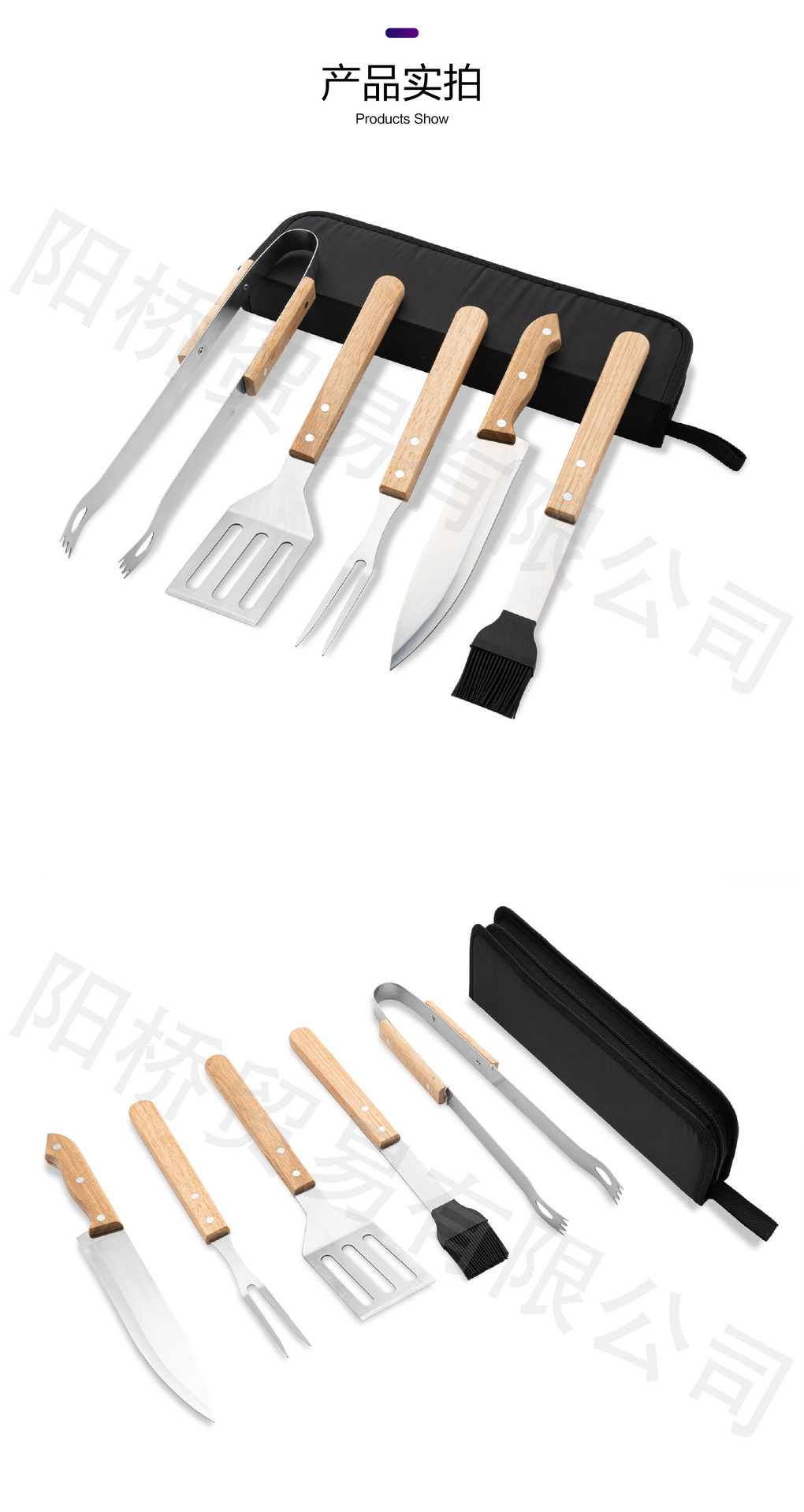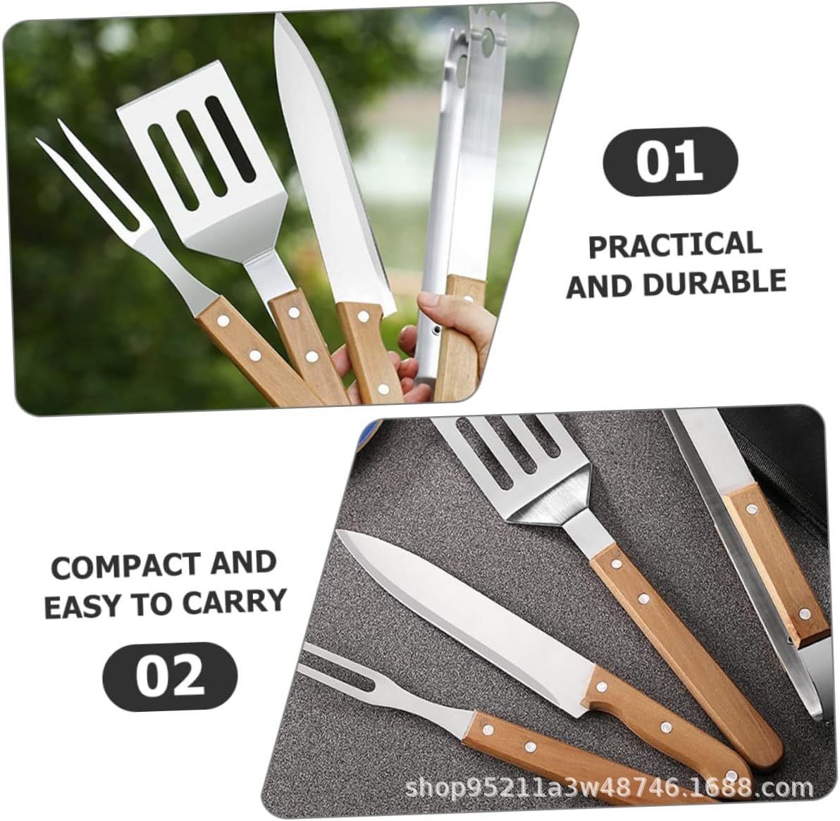 Acero inoxidable parrilla de acampamiento al aire libre BBQ conjunto de parrilla combinación de mango de madera bolsa de tela parrilla conjunto de herramientas