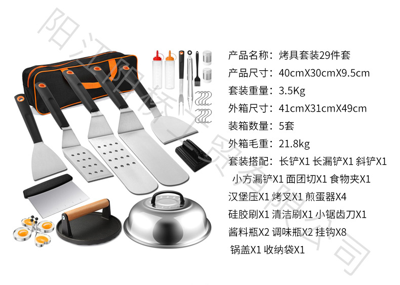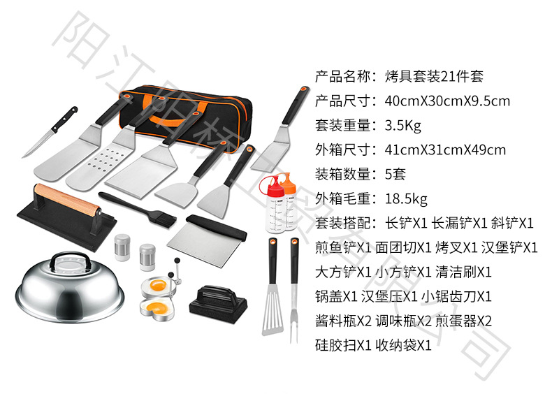 | Especificaciones | Conjunto de asadores 18 piezas (modelo alargado), conjunto de asadores 21 piezas (modelo alargado), conjunto de asadores 35 piezas (modelo alargado), conjunto de asadores 29 piezas (modelo alargado), conjunto de asadores 10 piezas (modelo alargado), pala de fuga larga (modelo alargado), pala de fuga larga (modelo alargado), pala de fuga abierta trilateral (modelo alargado), pala de apertura trilateral (modelo alargado), pala de apertura Trilateral (modelo alargado), pala de hamburguesa (modelo alargado), pala de boca inclinada (modelo alargado), pala de Pescado frito (modelo alargado), horquilla de horneado (modelo alargado) |