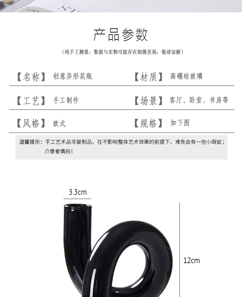 | Tamaño | Jarrón negro en forma, jarrón rosa en forma, jarrón gris en forma, jarrón azul en forma, jarrón transparente en forma |
