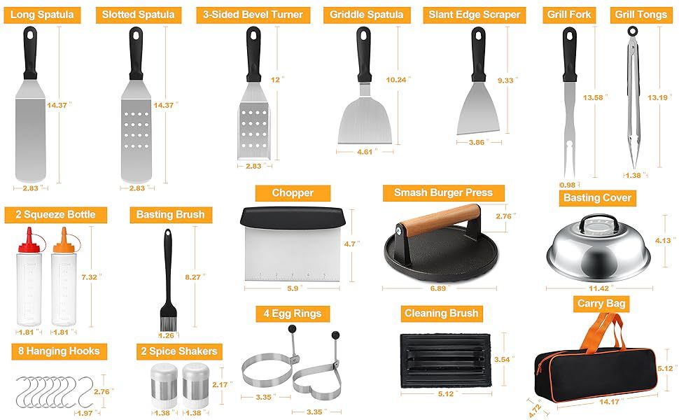 | Componentes | Pinzas, cepillos, tenedores, palas, otros |