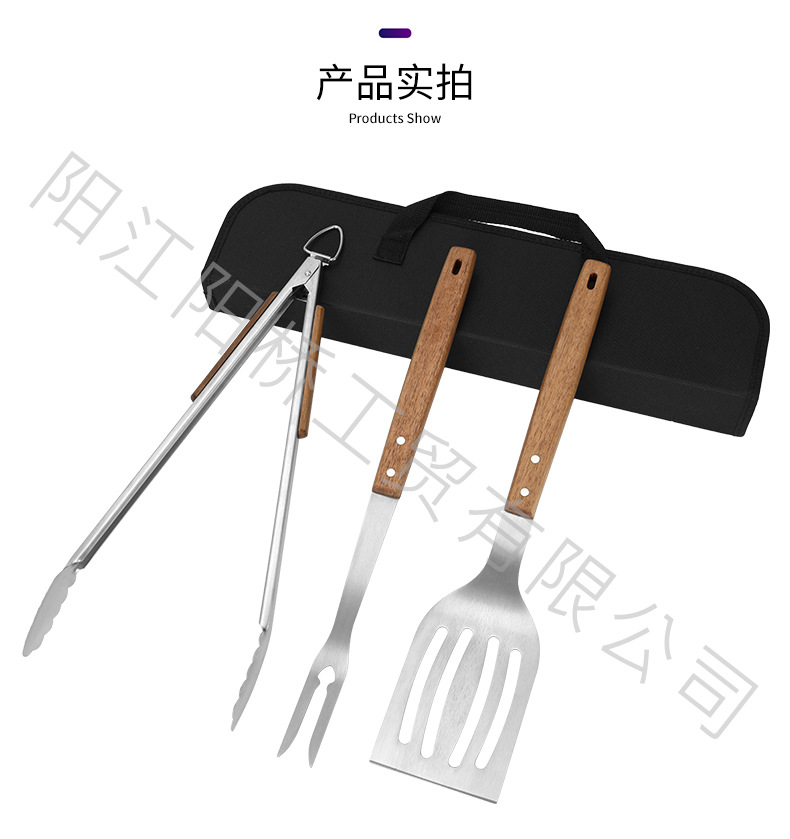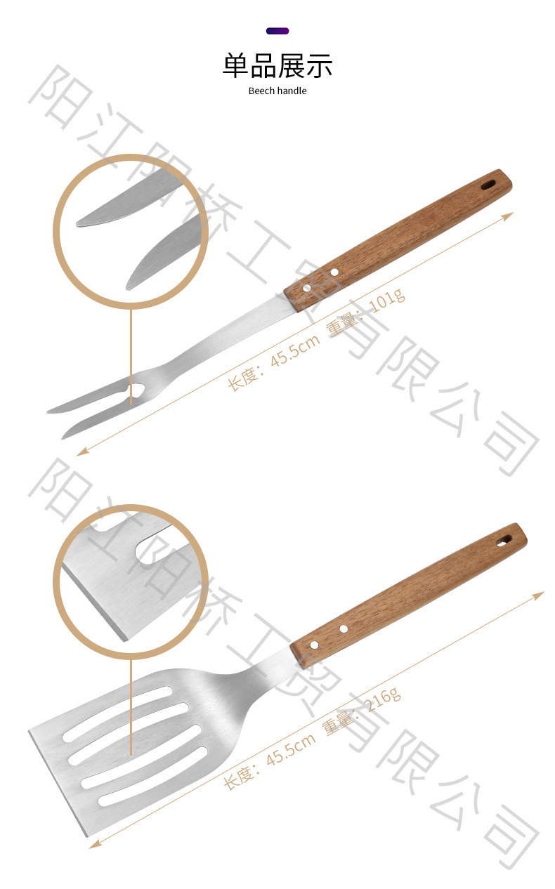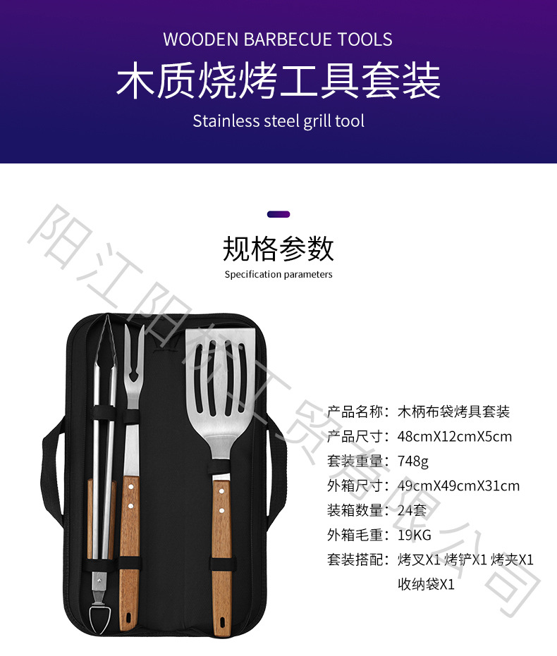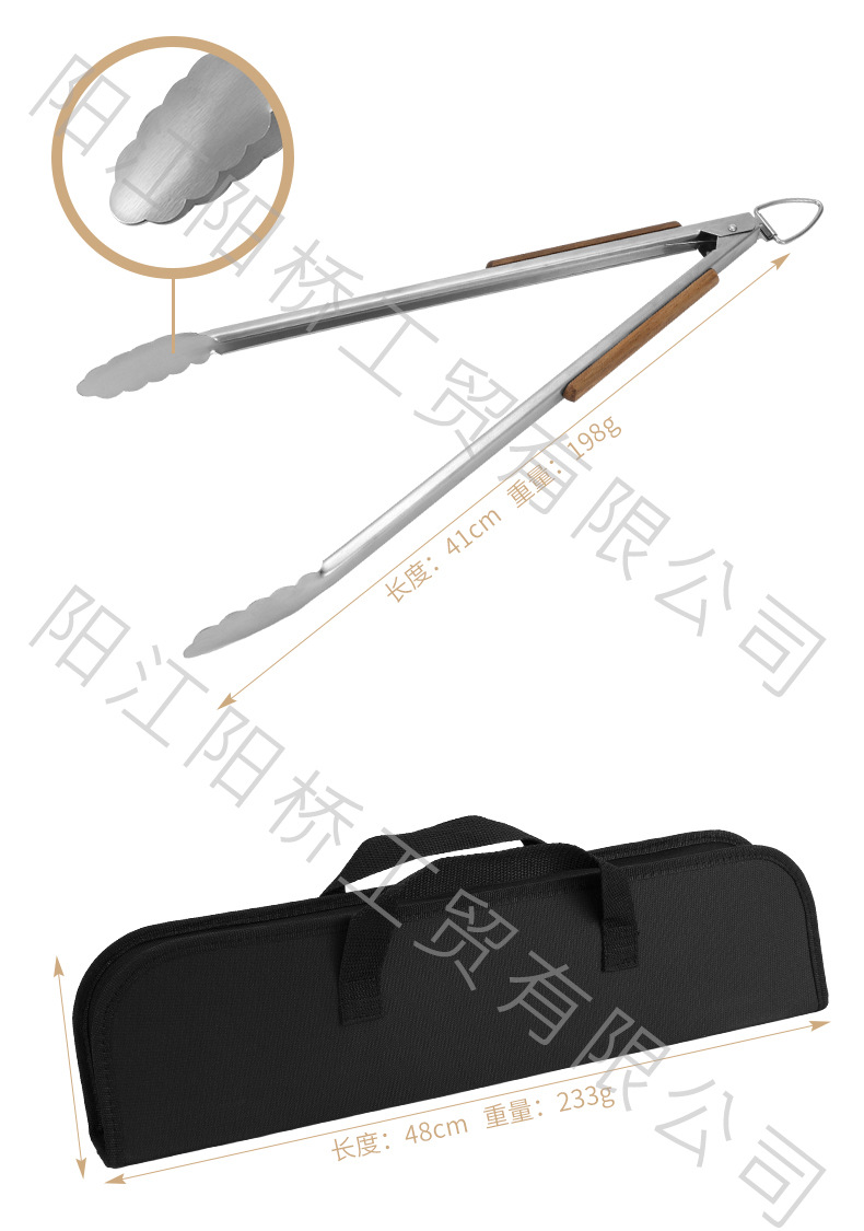 | Especificaciones | Juego de asadores de mango de madera de 18 pulgadas, juego de asadores de mango de madera de 18 pulgadas (modelo bolsa de tela) |
