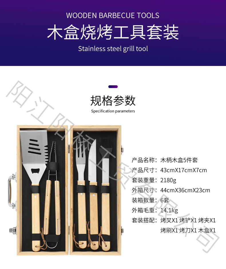 | Especificaciones | Juego de 5 piezas de herramientas de barbacoa de 16 pulgadas [caja de madera], juego de 5 piezas de herramientas de barbacoa de 16 pulgadas |