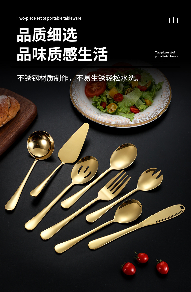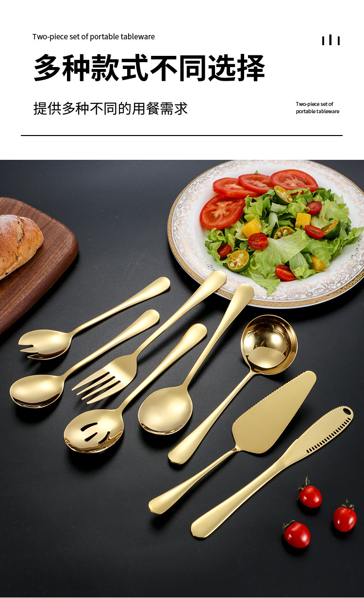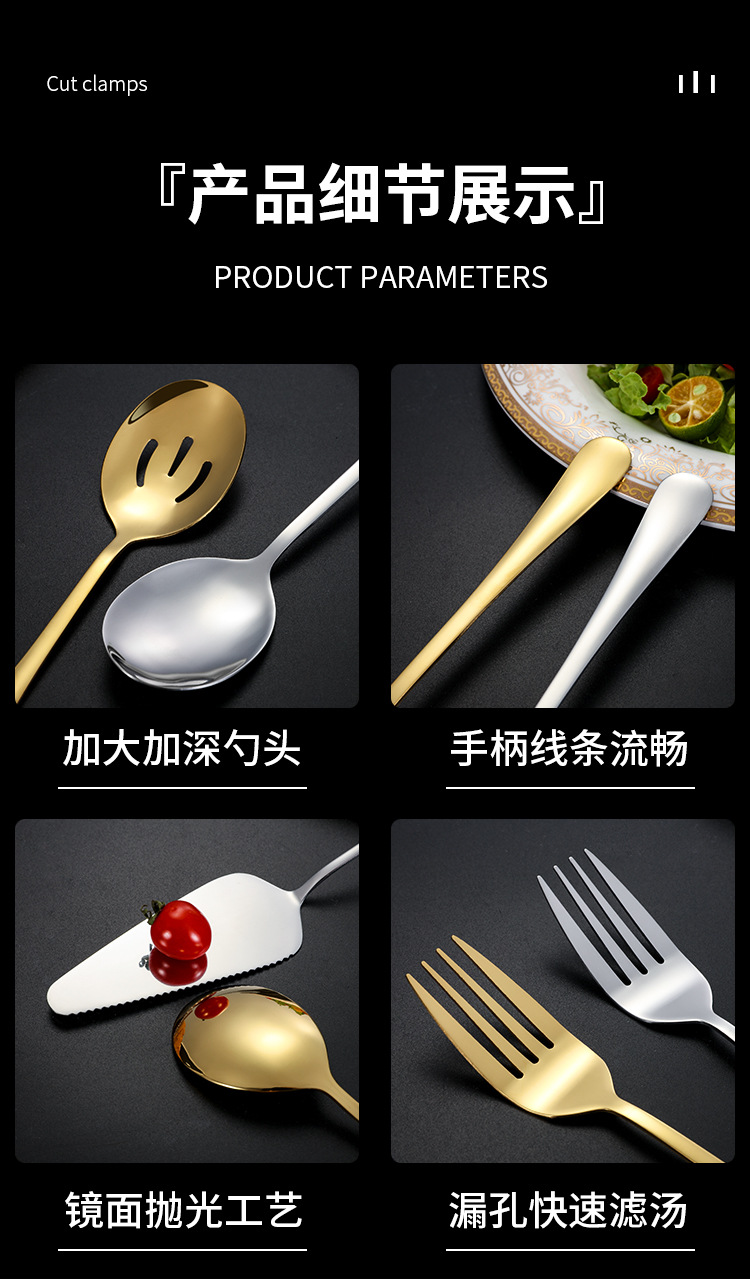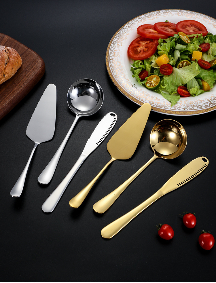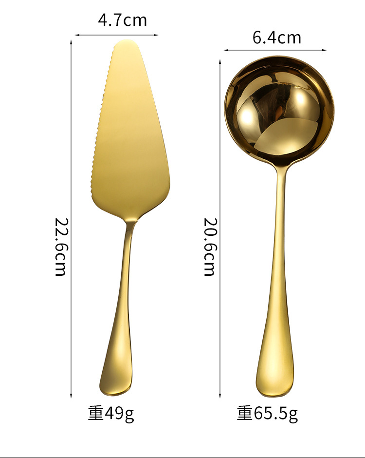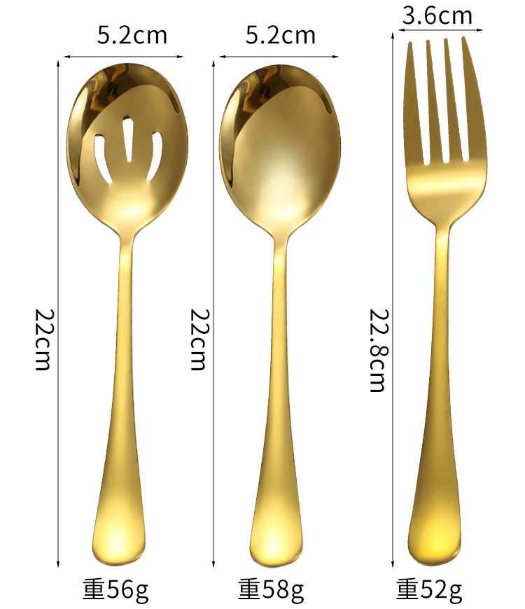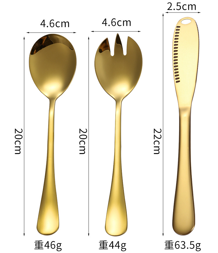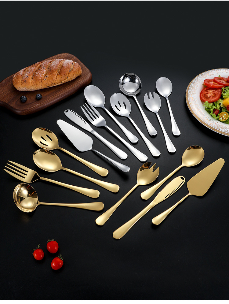 | Color | Cuchara de ensalada de plata,Tenedor de ensalada de plata,Pala pastel de plata,Plata-cuchara,Colador de plata que sirve,Plata-tenedor,Cuchillo de mantequilla de plata,Plata-pequeña cáscara de sopa,Cuchara de ensalada de oro,Tenedor de ensalada de oro,Pala de pastel de oro,Cuchara de oro,Colador de oro dividido,Tenedor de oro,Cuchillo de oro y mantequilla,Oro-pequeña cáscara de sopa,Plata-Conjunto de ocho piezas,Oro-Conjunto de ocho piezas |