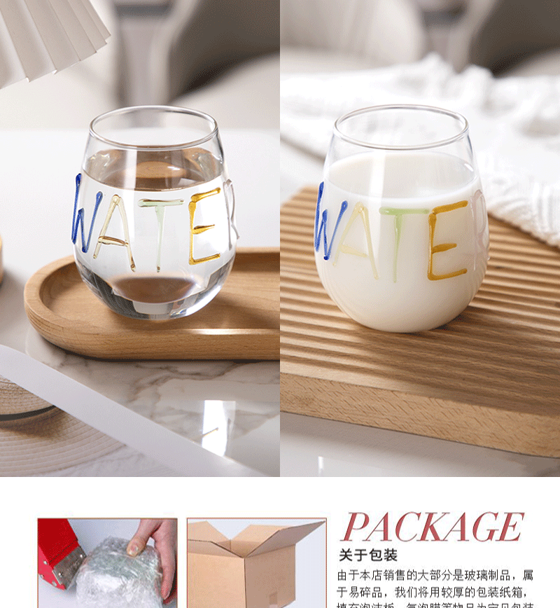 Hecho a mano colorido carta de vidrio resistente al calor embalaje regalo de cumpleaños taza de agua taza de jugo de gran capacidad