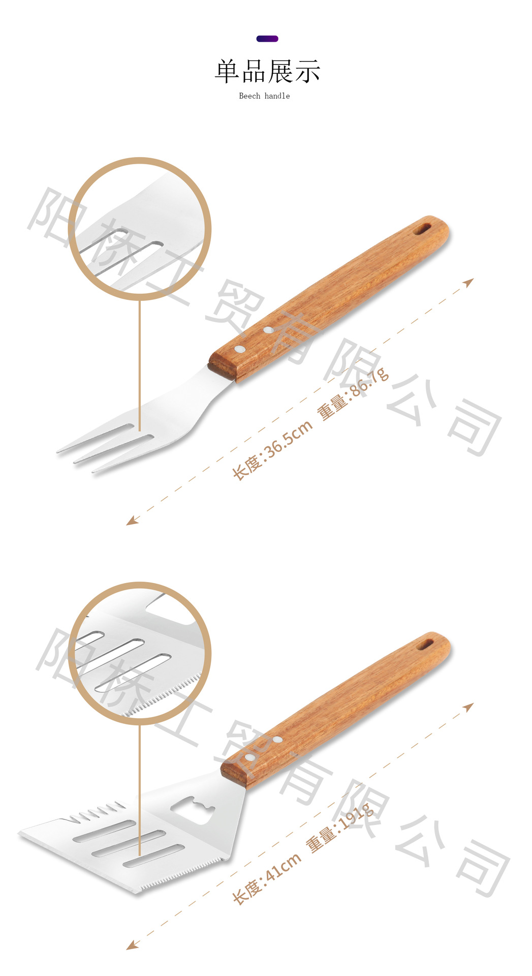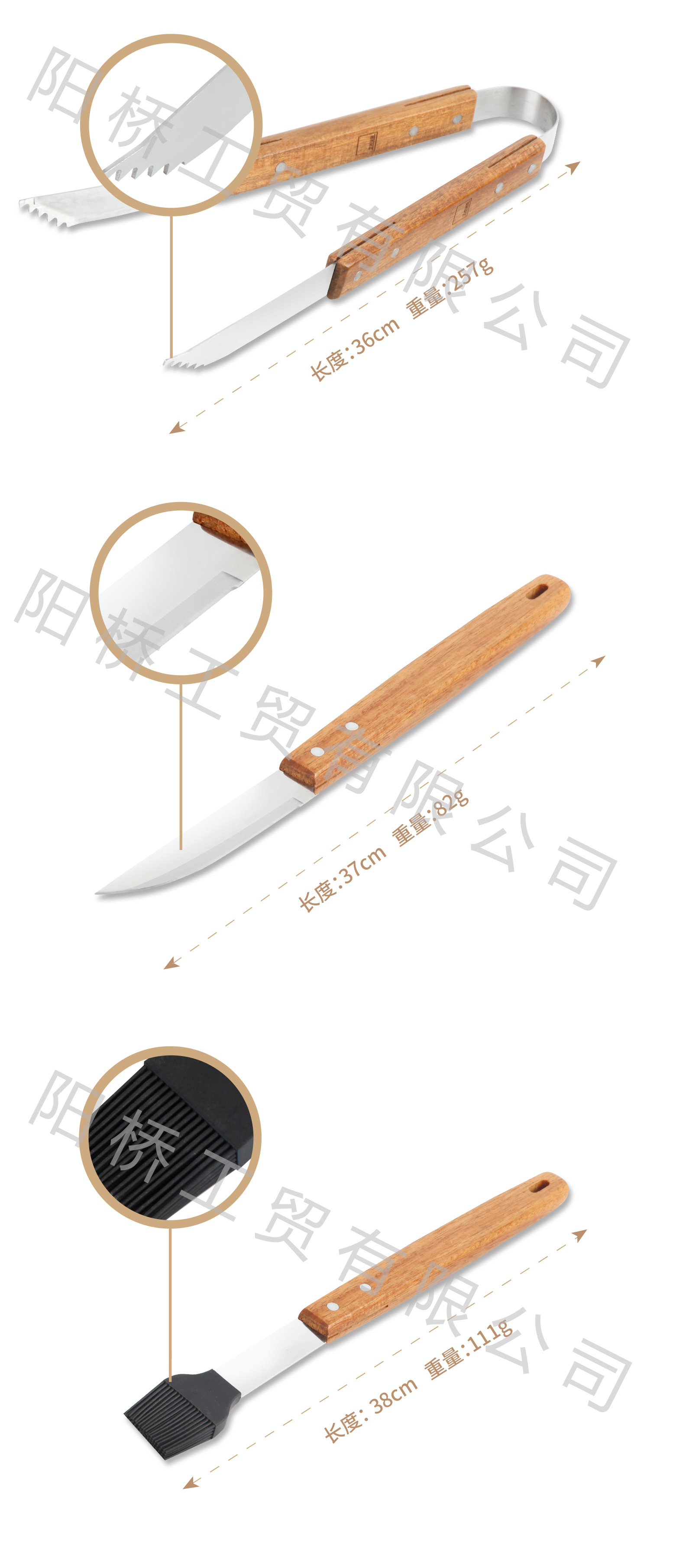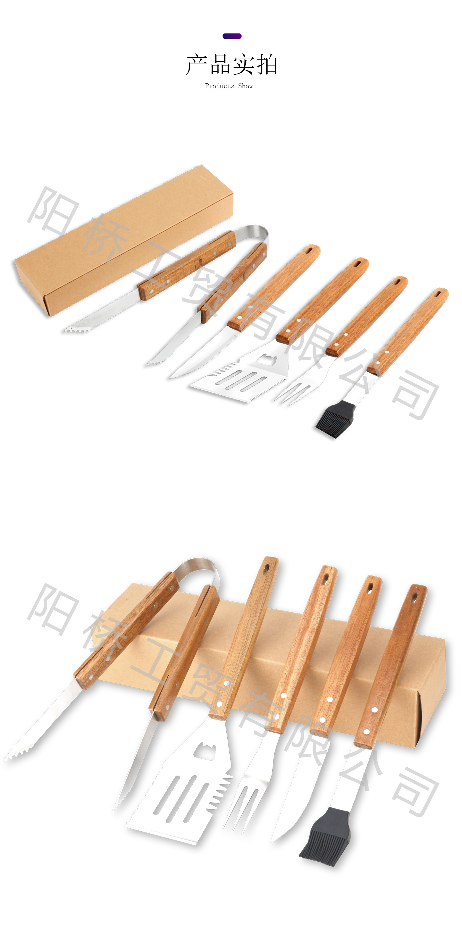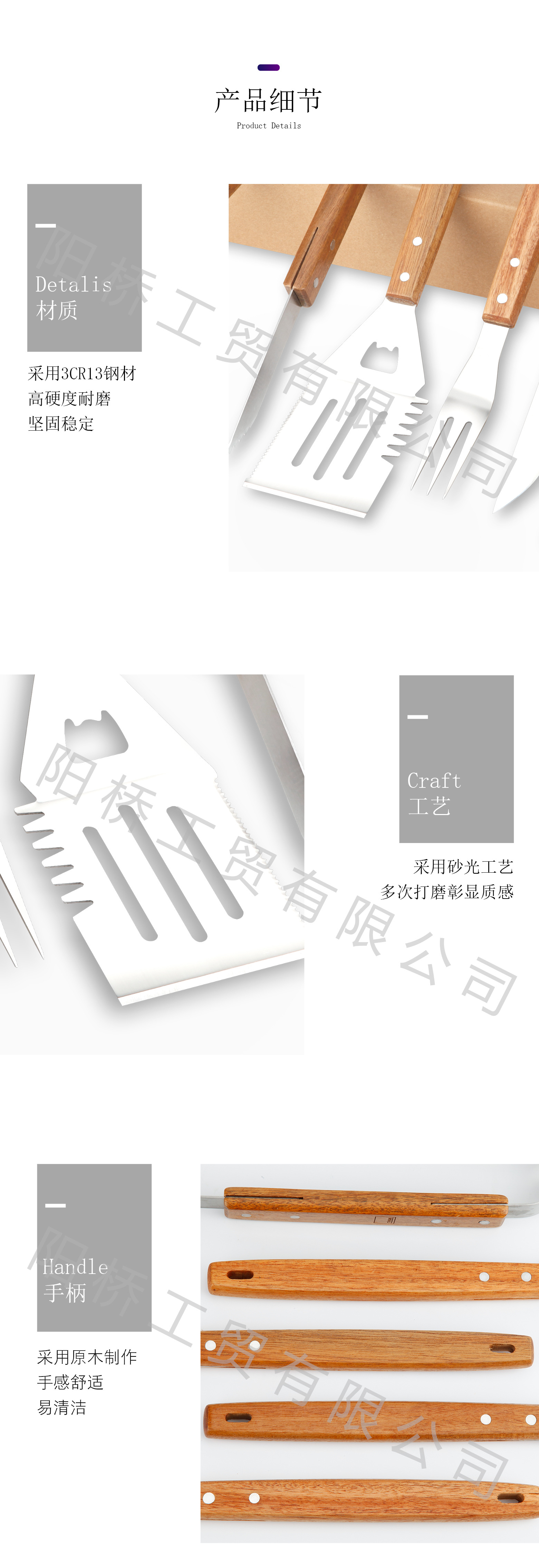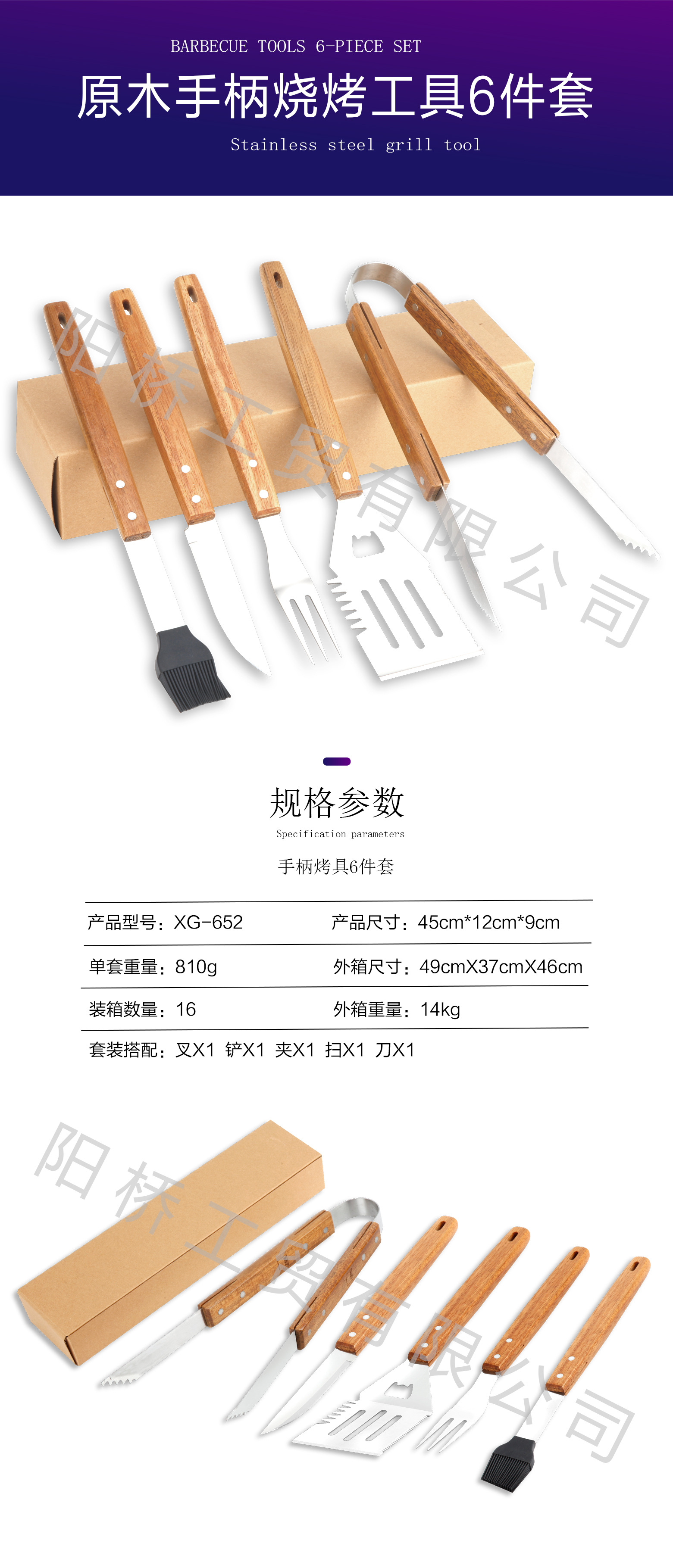| Especificaciones | Juego de parrilla de mango de madera juego de cinco piezas |