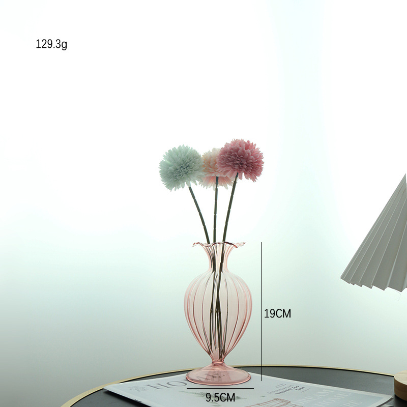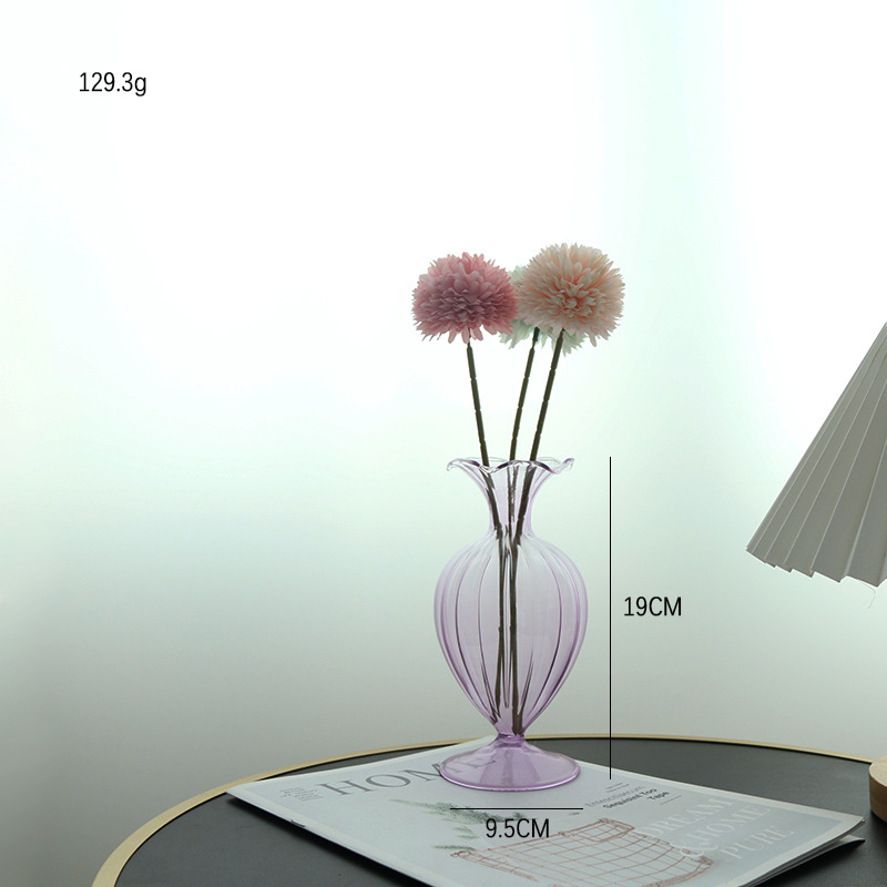 Estilo europeo retro simple boca de vidrio gran vientre serie florero de vidrio sala de estar estudio en casa decoración de noche Lily
