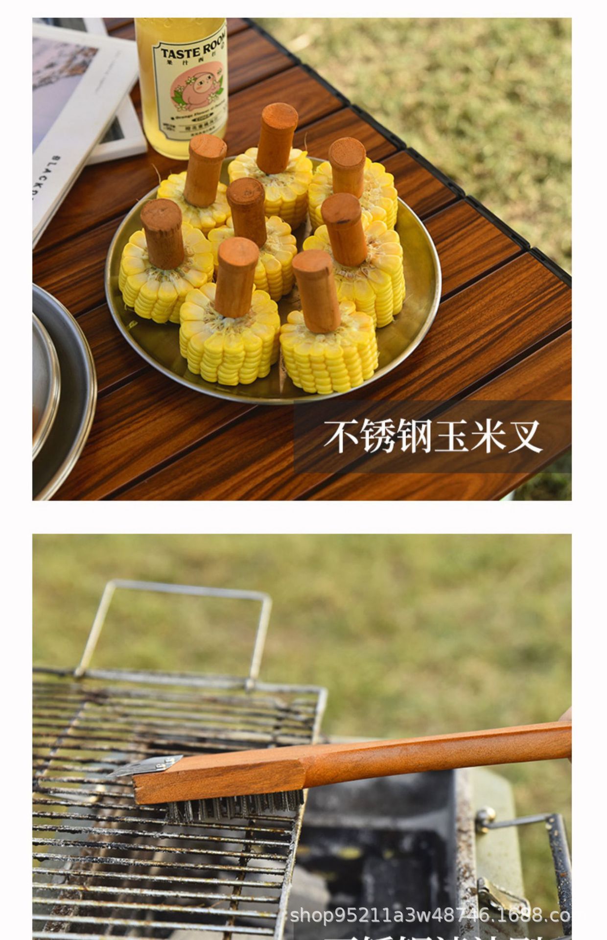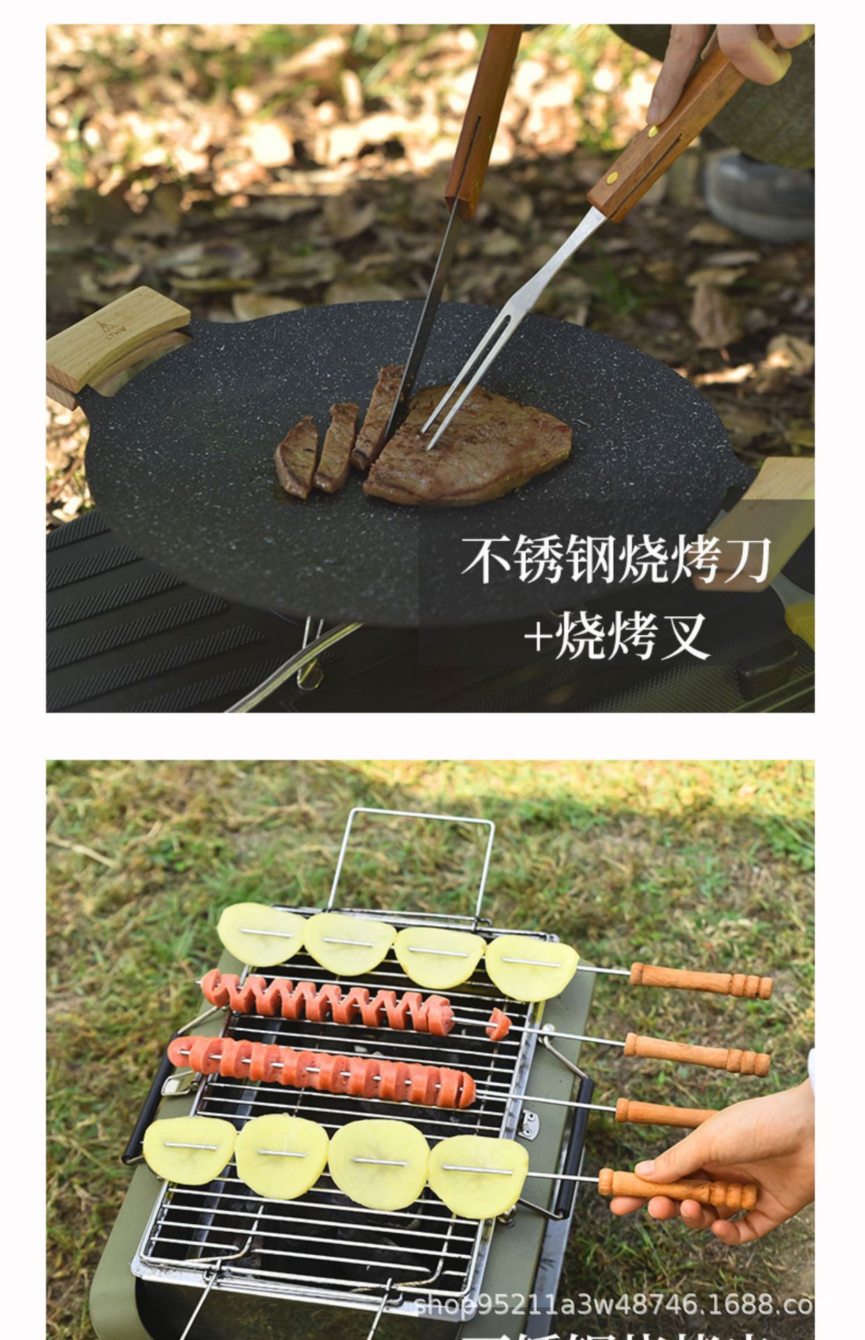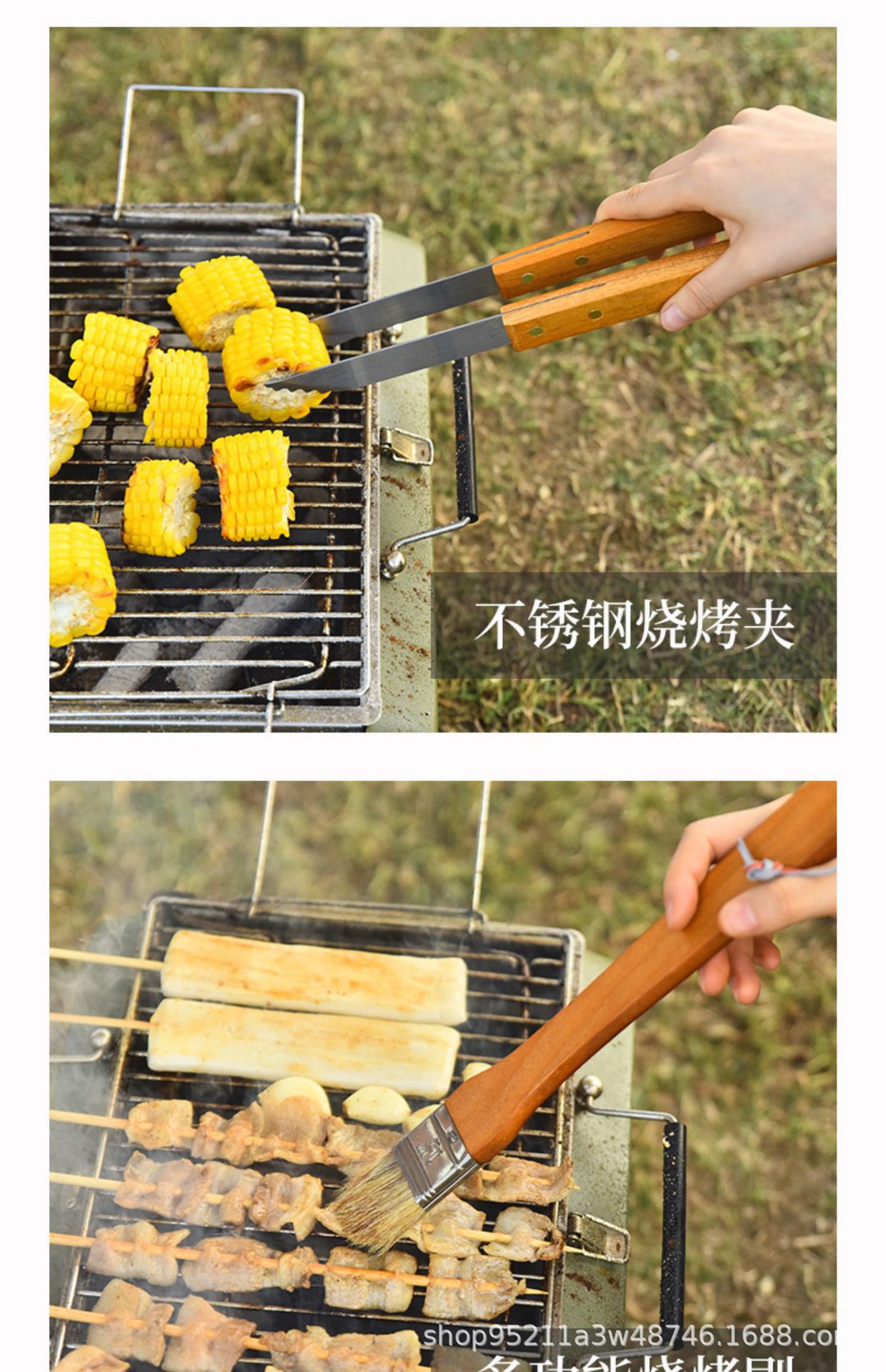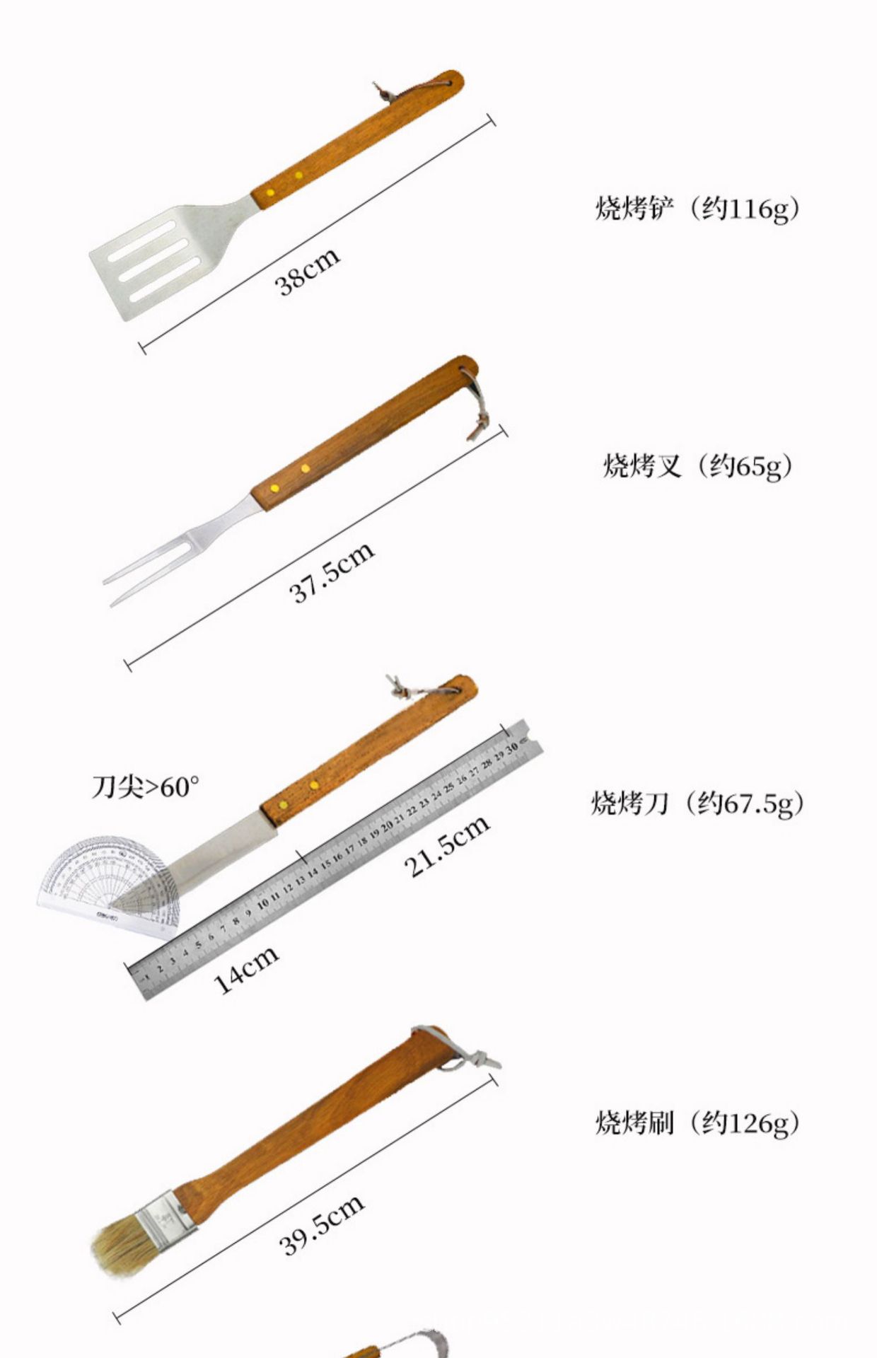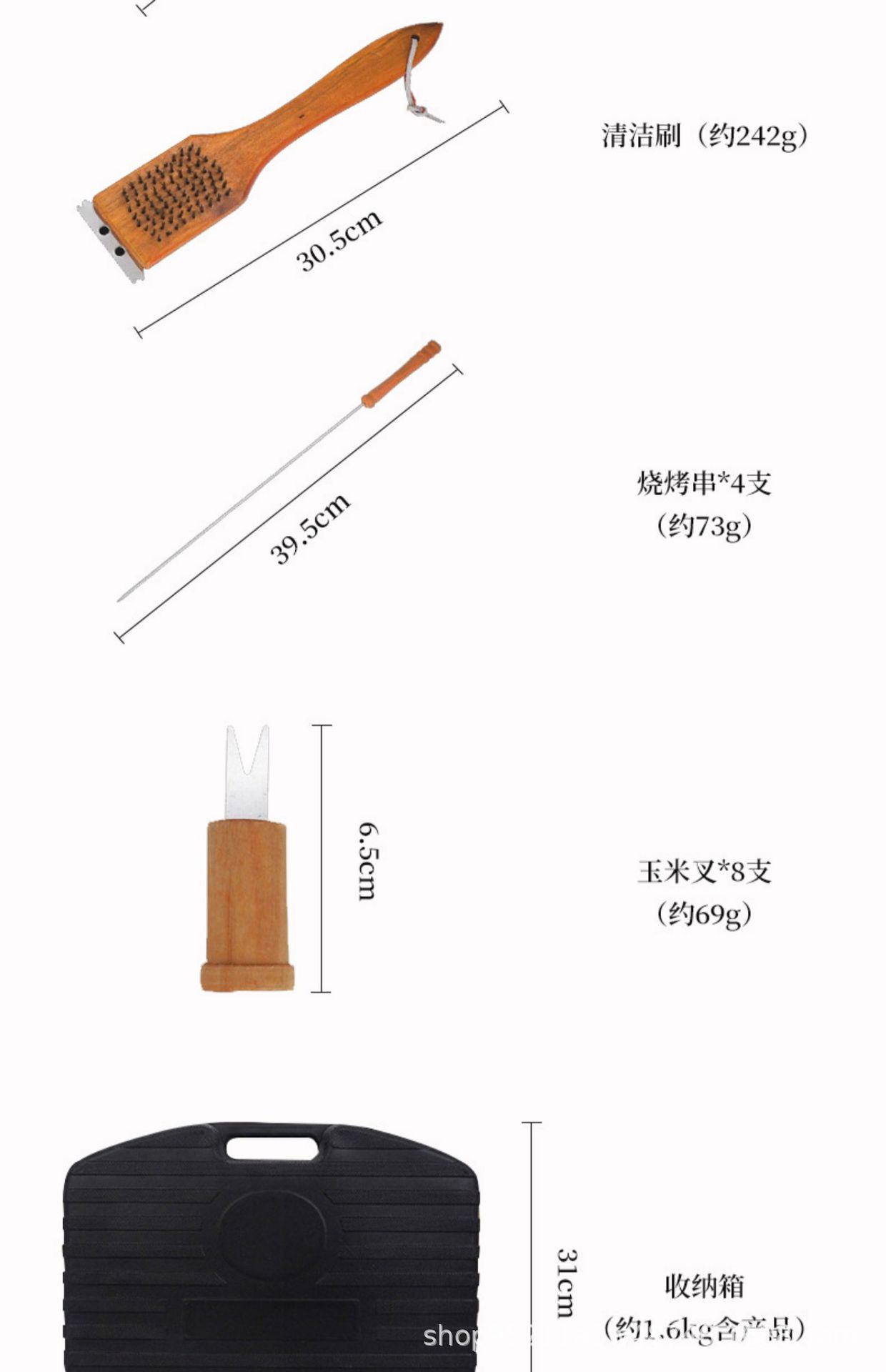 Directo de fábrica de madera mango parrilla traje de acero inoxidable parrilla al aire libre barbacoa plástico caja de plástico herramientas de barbacoa de 19 piezas