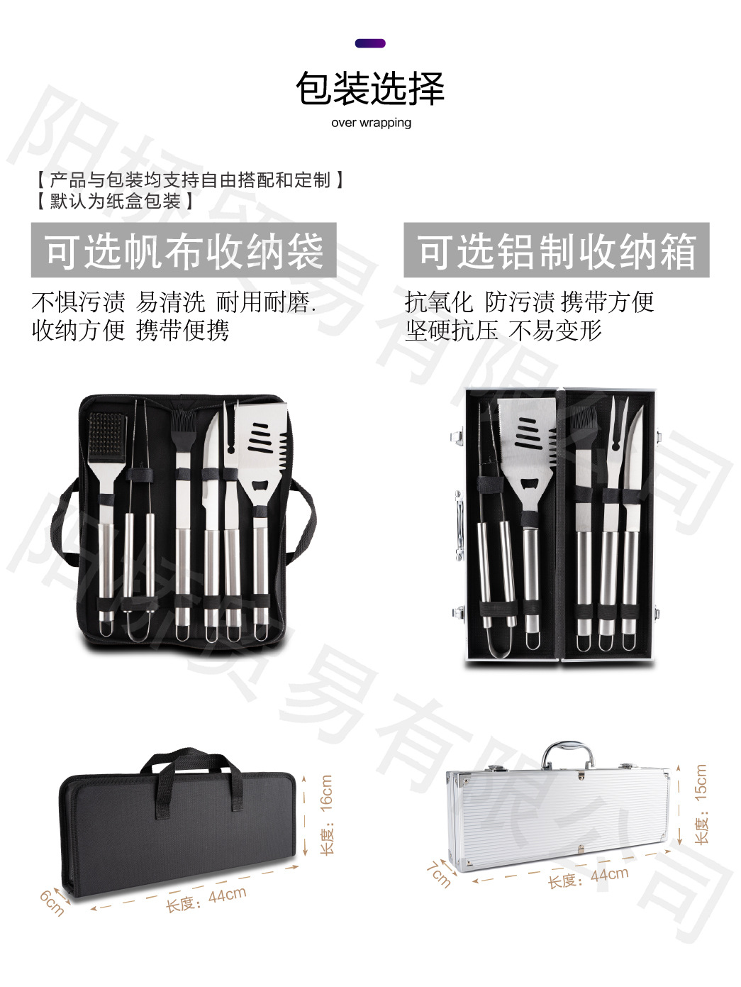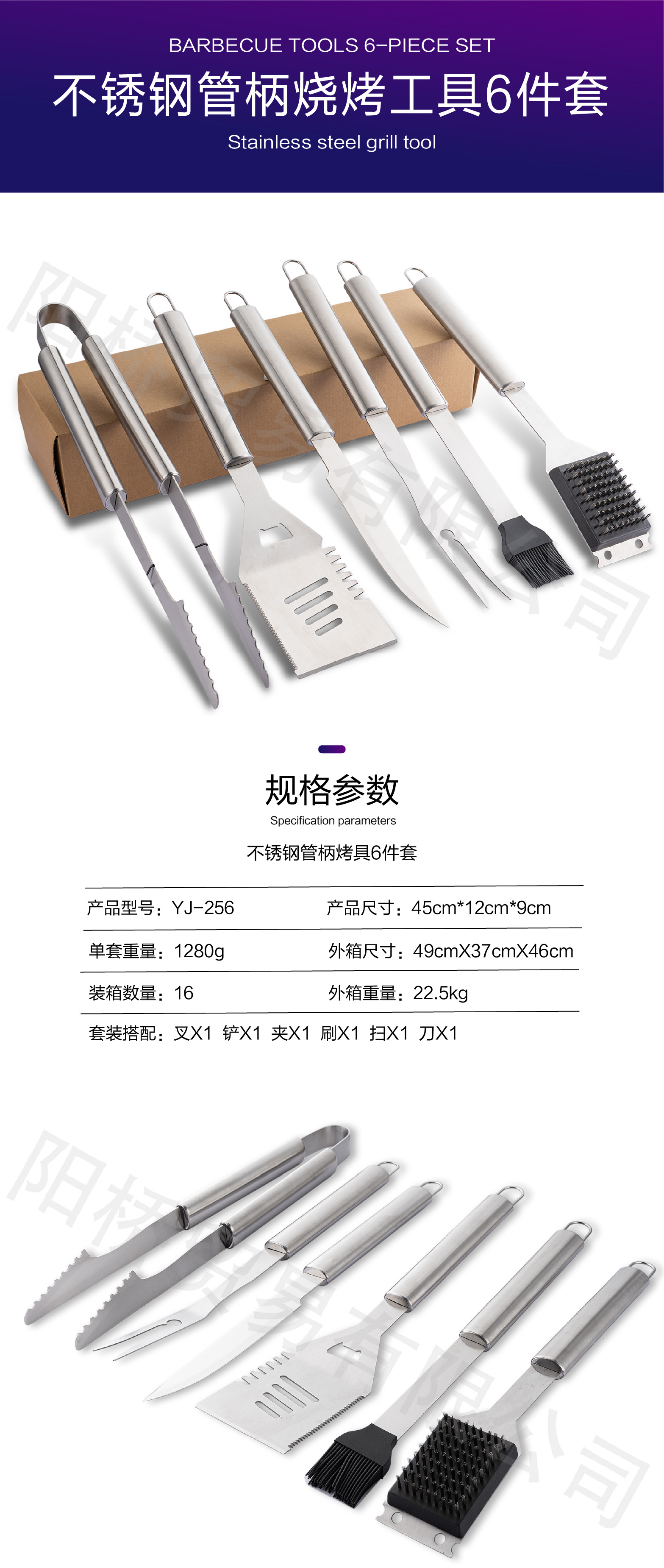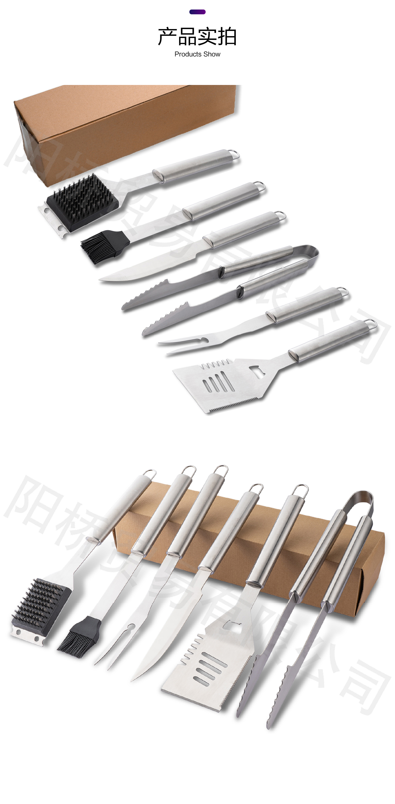 | Especificaciones | 16-inch tubo mango herramientas de barbacoa conjunto de 3,16 pulgadas mango de tubo herramientas de barbacoa 6-piece Set |