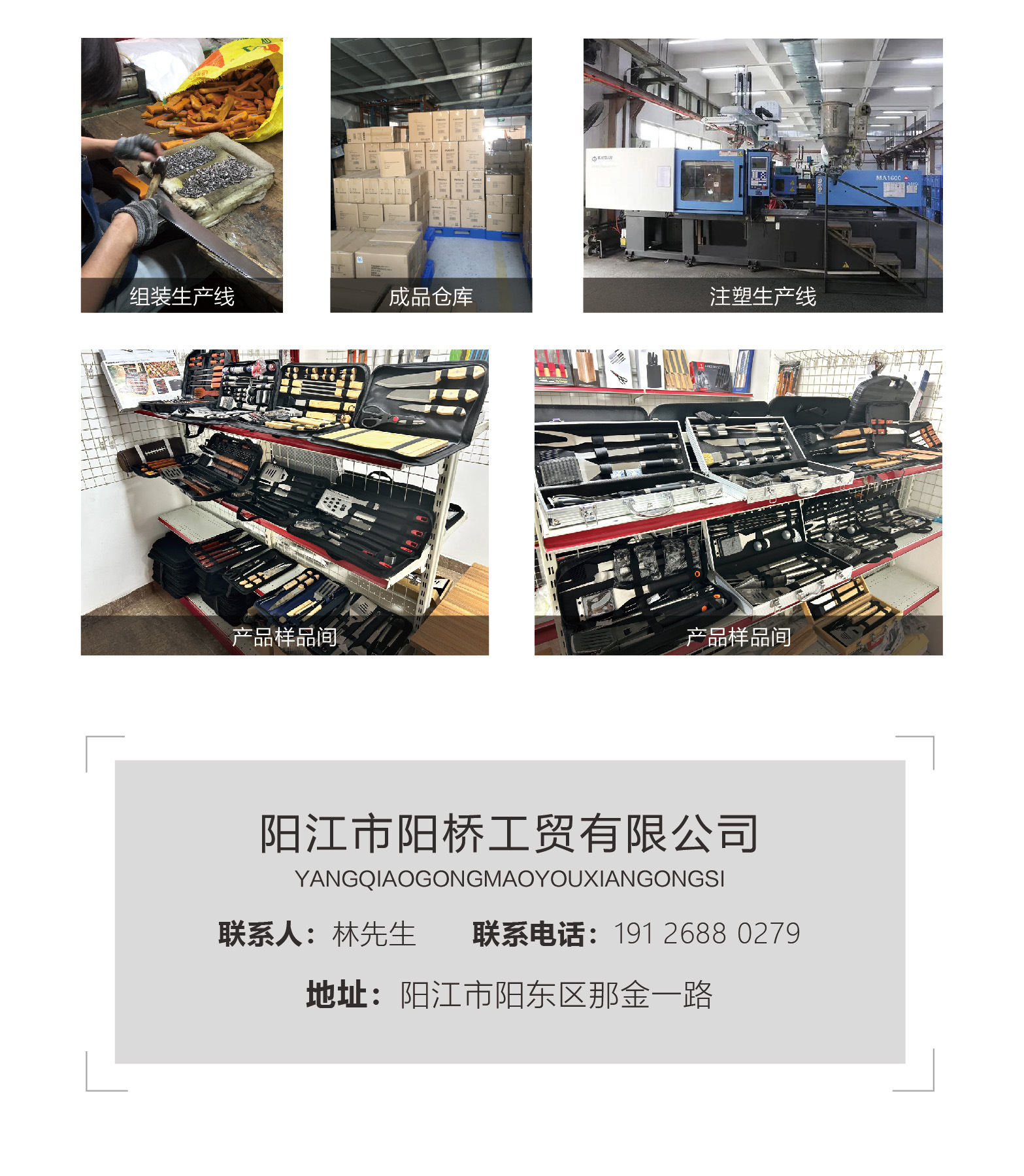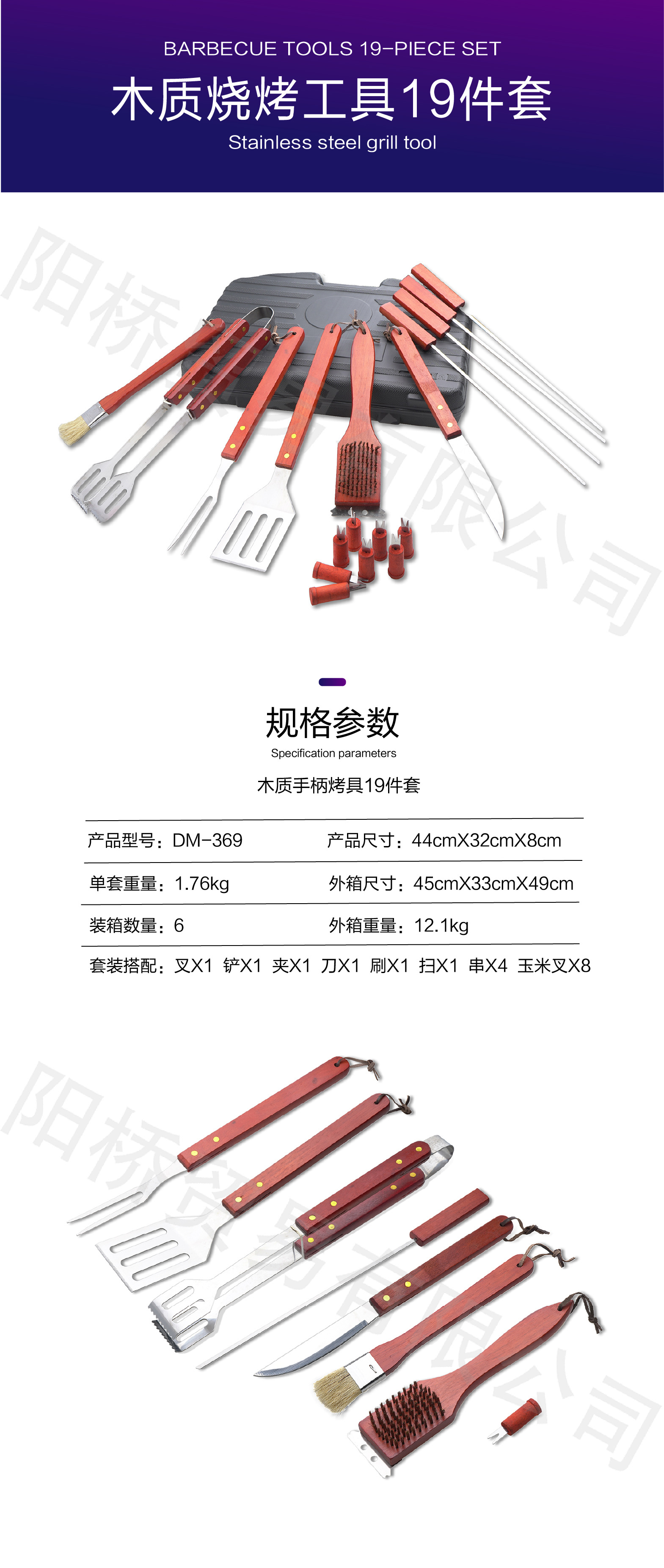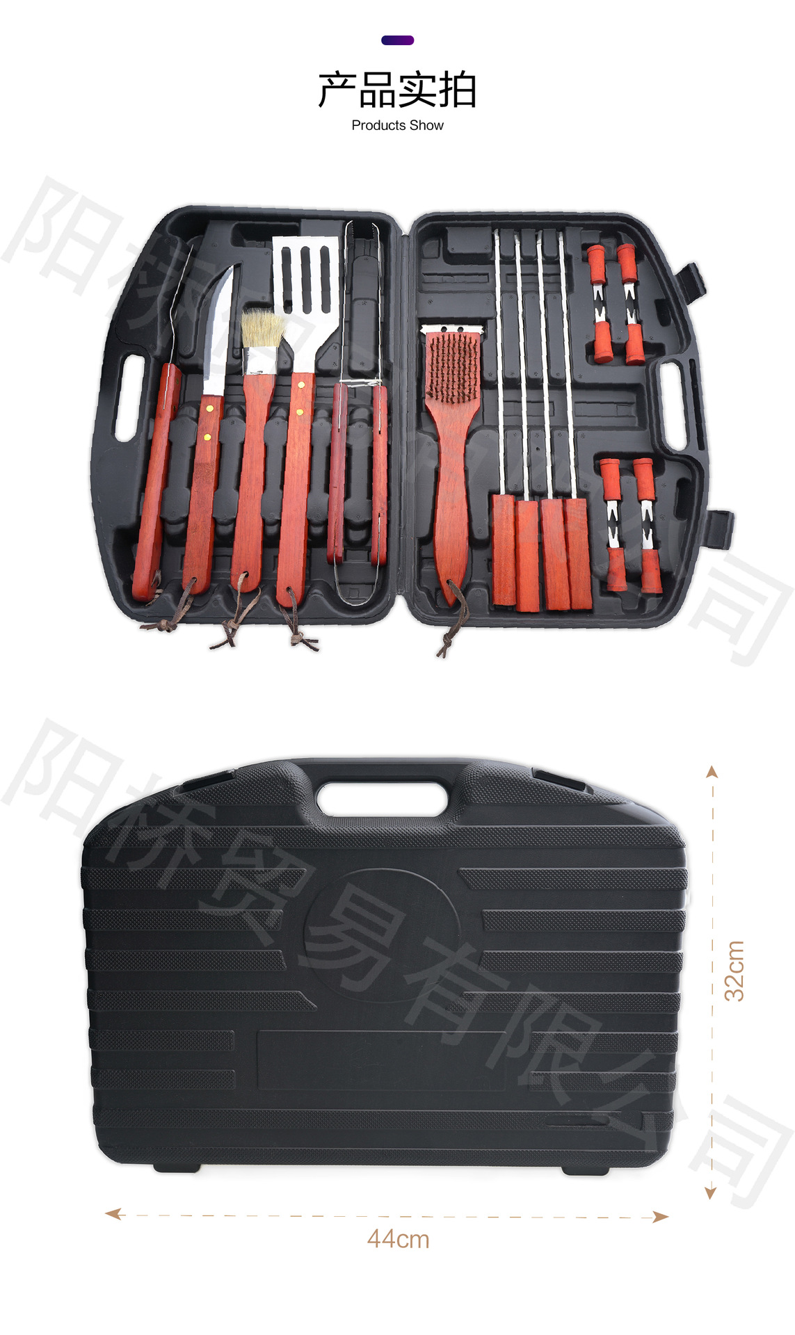 | Especificaciones | Caja de plástico mango de madera Grill 19-piece set A,Caja de plástico mango de madera Grill 19-piece set B |