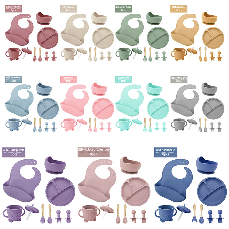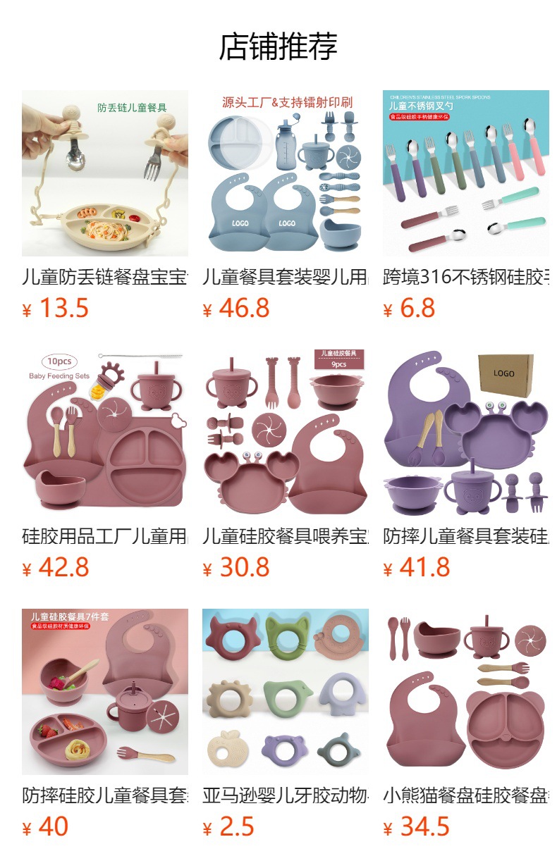 【品名】:儿童餐具套装 【材质】:食品级硅胶