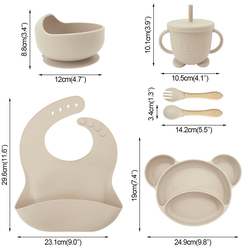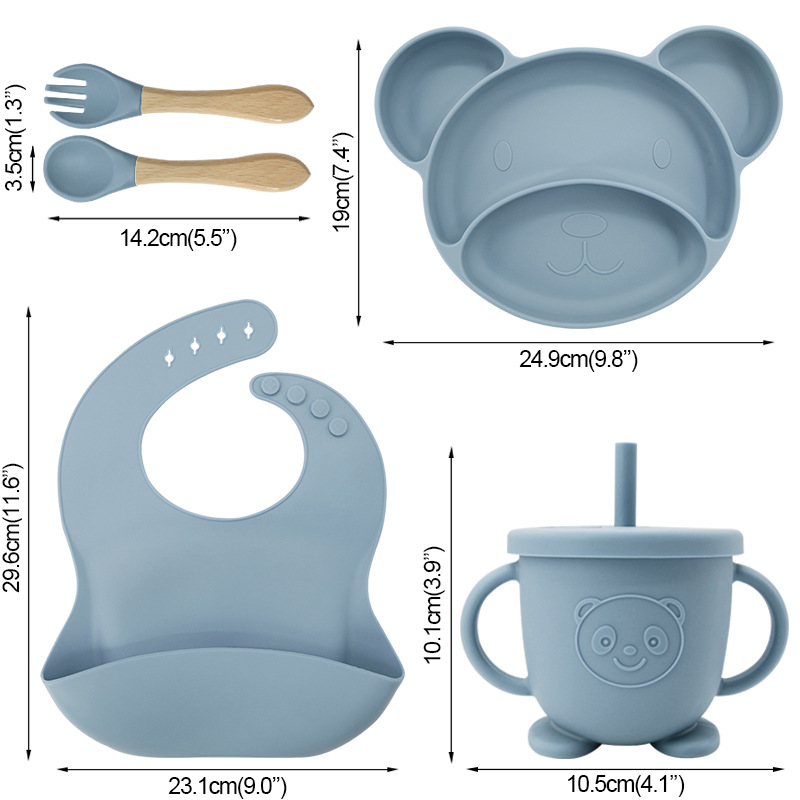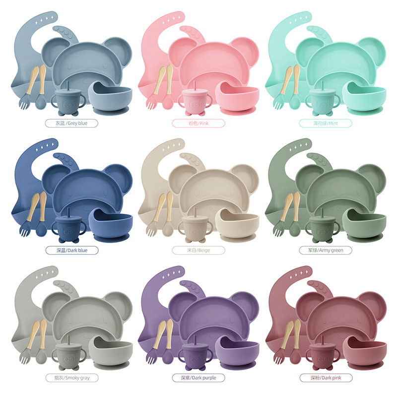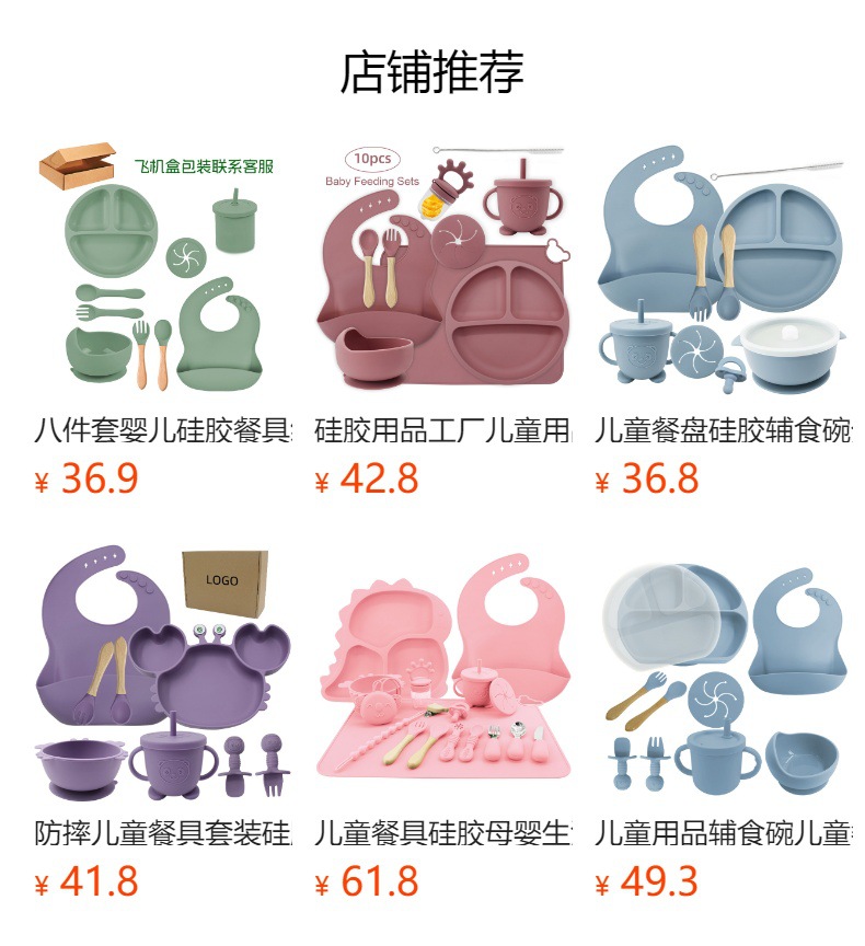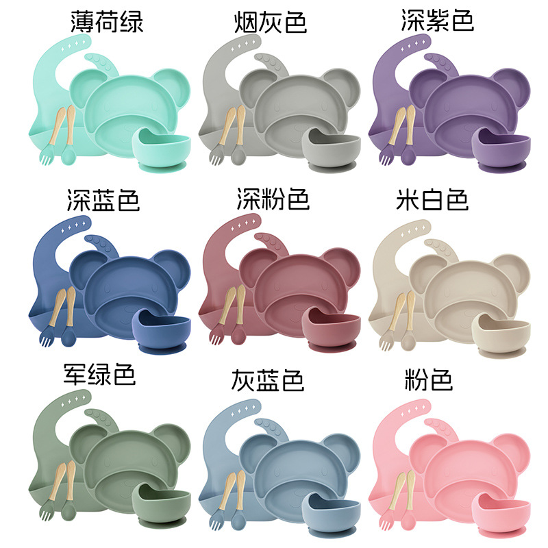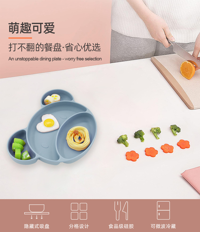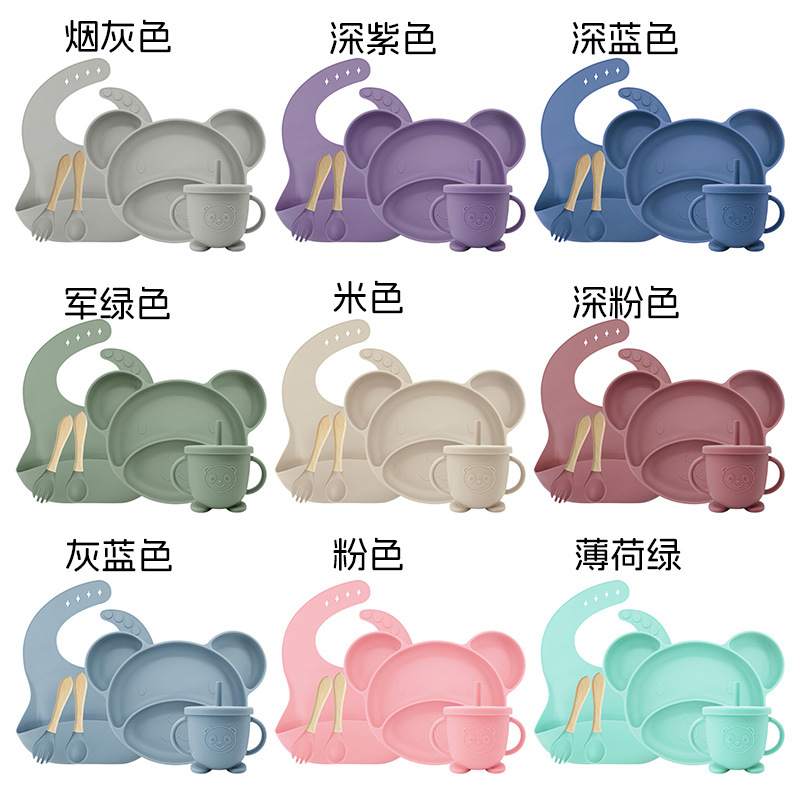 【品名】:儿童餐具套装 【材质】:食品级硅胶