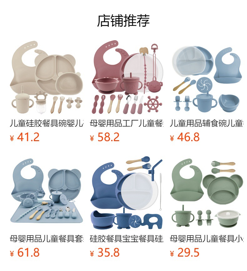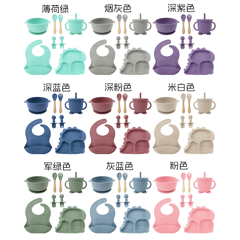 【品名】:儿童餐具套装 【材质】:食品级硅胶