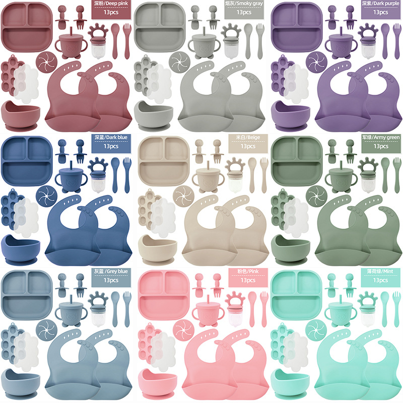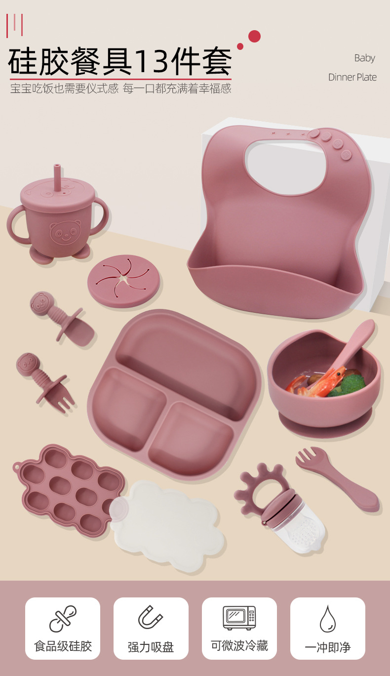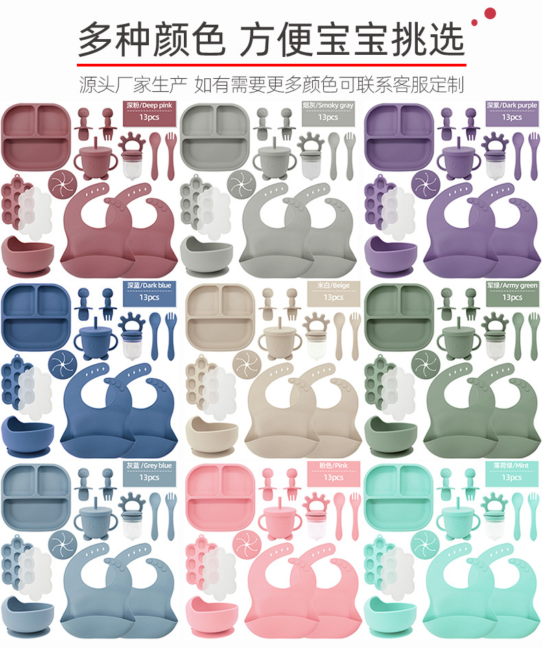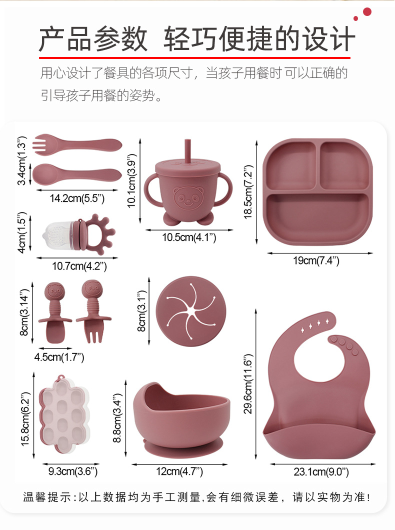 【品名】:儿童餐具套装 【材质】:食品级硅胶