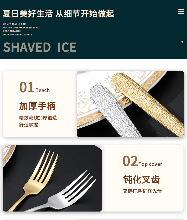 | Colores | Cuchara de té plateada con patrón de tela elegante 304,304 elegante patrón de tela plata-tenedor largo,304 elegante patrón de tela plata-cuchara redonda de hielo,304 elegante patrón de tela plata-cuchara de punta de hielo,304 elegante patrón de tela plata-cuchara redonda,304 elegante patrón de tela plata-cuchara puntiaguda,304 tenedor plateado con patrón de tela elegante,Cuchillo de mesa plateado con patrón de tela elegante 304,Cuchillo de carne plateado con patrón de tela elegante 304,304 elegante patrón de tela plata-gran cáscara de sopa,Cuchara de mesa dividida plateada con patrón de tela elegante 304,Cuchara de té dorado con patrón de tela elegante 304,304 elegante patrón de tela dorada-tenedor largo,304 elegante patrón de tela dorada-cuchara redonda de hielo,304 elegante patrón de tela dorada-cuchara de punta de hielo,304 elegante patrón de tela dorada-cuchara redonda,304 elegante patrón de tela dorada-cuchara puntiaguda,304 elegante patrón de tela dorada-tenedor,304 elegante cuchillo de mesa dorado con patrón de tela,304 elegante cuchillo de carne dorado con patrón de tela,304 elegante patrón de tela dorado-gran cáscara de sopa,Cuchara de mesa dorada con patrón de tela elegante 304 |