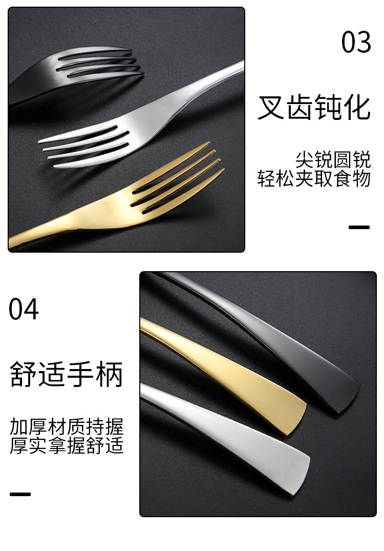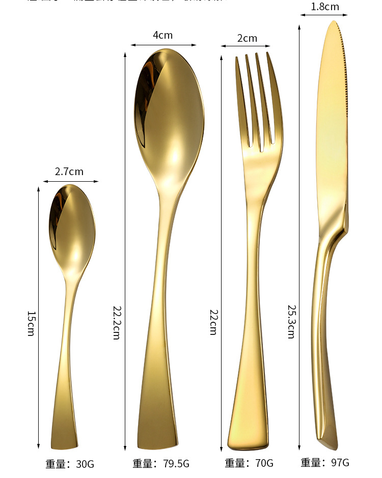 | Color | Cuchara de té de plata,Cuchara de plata,Tenedor de plata,Cuchillo de mesa de plata,Plata-Conjunto de 4 piezas,Cuchara de té de oro,Cuchara de oro,Tenedor dorado,Cuchillo de oro,Oro-Set de 4 piezas,Cuchara de té de oro rosa,Cuchara de oro rosa,Tenedor de oro rosa,Cuchillo de oro rosa,Oro Rosa-Set de 4 piezas,Cuchara de té colorido,Cuchara colorida,Tenedor de color mágico,Cuchillo de cena de color mágico,Colorido-Conjunto de 4 piezas,Cuchara de té negro,Cuchara negra,Tenedor negro,Cuchillo negro,Negro-Set de 4 piezas |