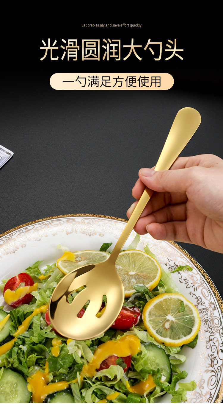| Especificaciones | Color primario-cuchara de sopa,Color primario-Colador,Color primario-tenedor,Cuchara de oro,Cuchara original-Colador,Tenedor de oro,Conjunto de 3 piezas de plata,Conjunto de 3 piezas de oro |