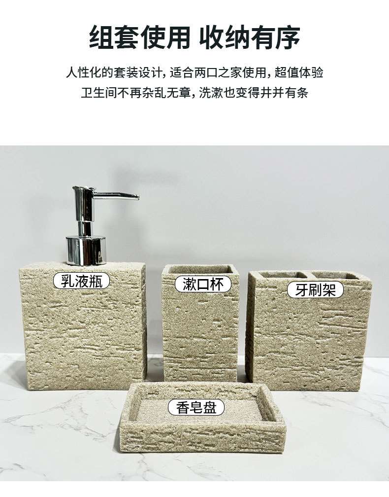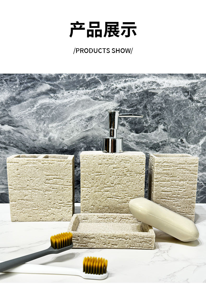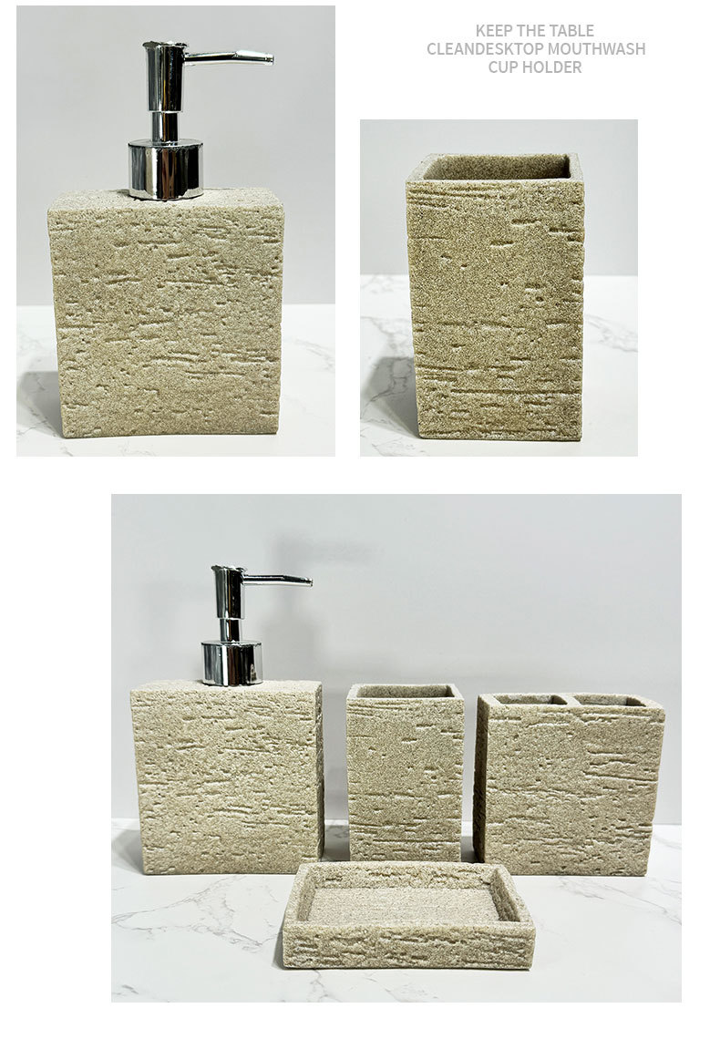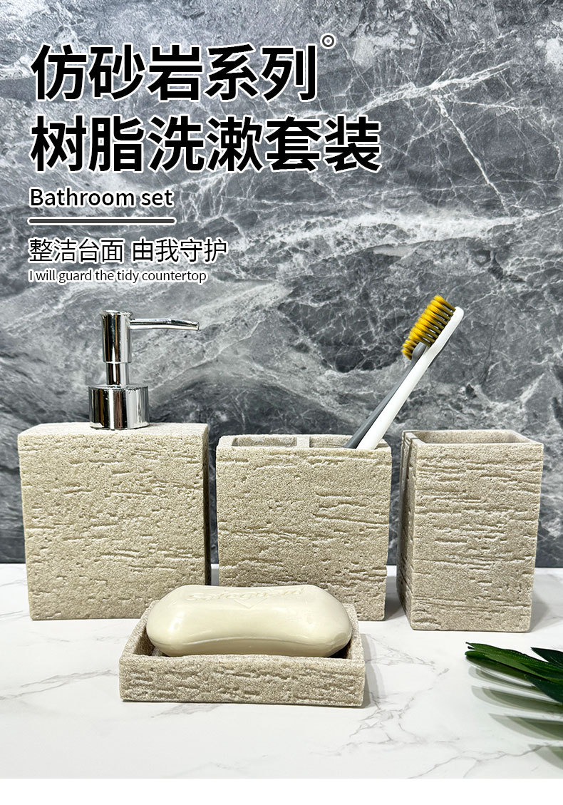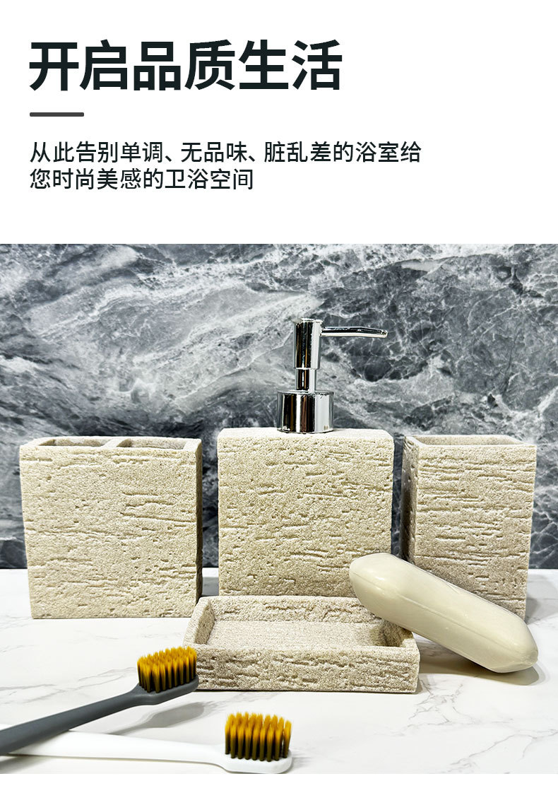Diseño de piedra arenisca de imitación de estilo nórdico, baño de arena y grava de cuatro piezas, baño de hotel, juego de lavado, taza de enjuague bucal, soporte para cepillos de dientes