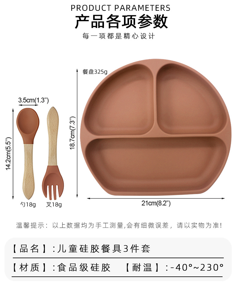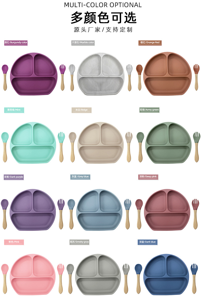 | Especificaciones | [plato sonriente + cuchara de tenedor de mango de madera], [plato sonriente separado] |