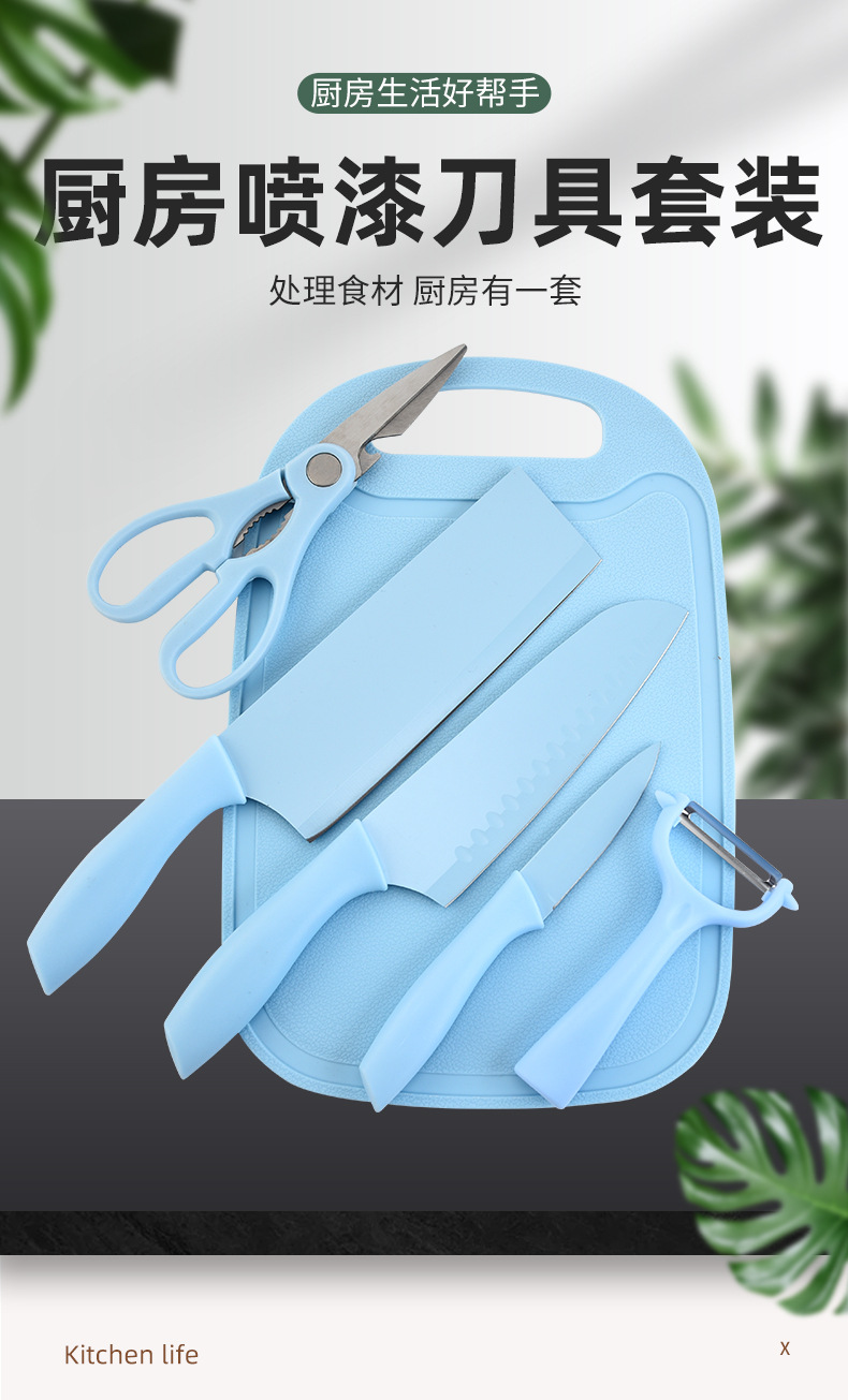 | Especificaciones | Conjunto de seis piezas de cuchillo de pintura de acero inoxidable - color aleatorio, cuchillo de cocina de pintura - color aleatorio, cuchillo de chef de pintura con cuchillo - color aleatorio, cuchillo de frutas de pintura con cuchillo - color aleatorio, tijeras de acero inoxidable - color aleatorio, planeador de melón de acero inoxidable - color aleatorio, tablero de cocina - color aleatorio |