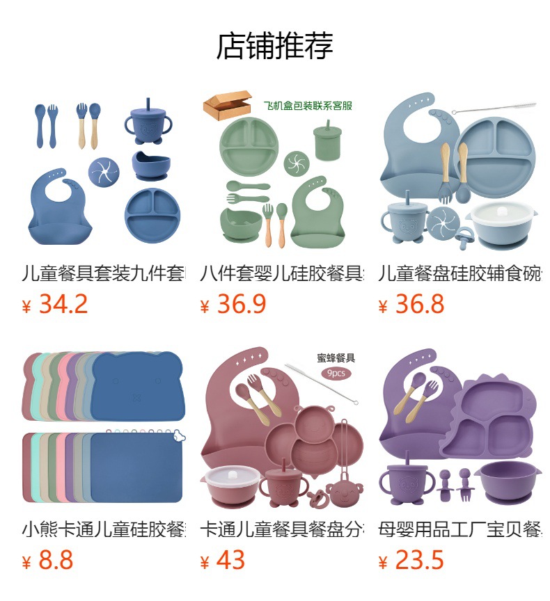 【品名】:儿童餐具套装 【材质】:食品级硅胶