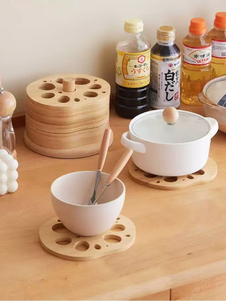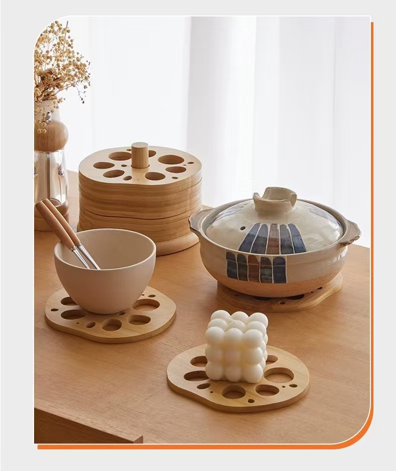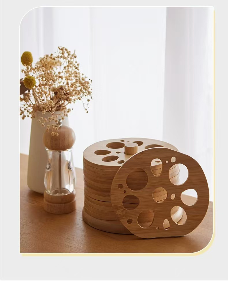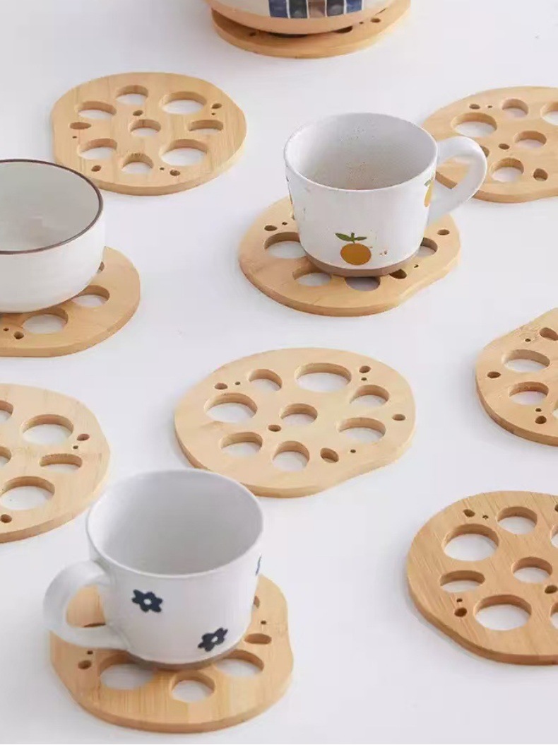 | Colores | Posavasos de raíz de loto de bambú de una sola pieza,Base de 6 piezas de bambú y raíz de loto |