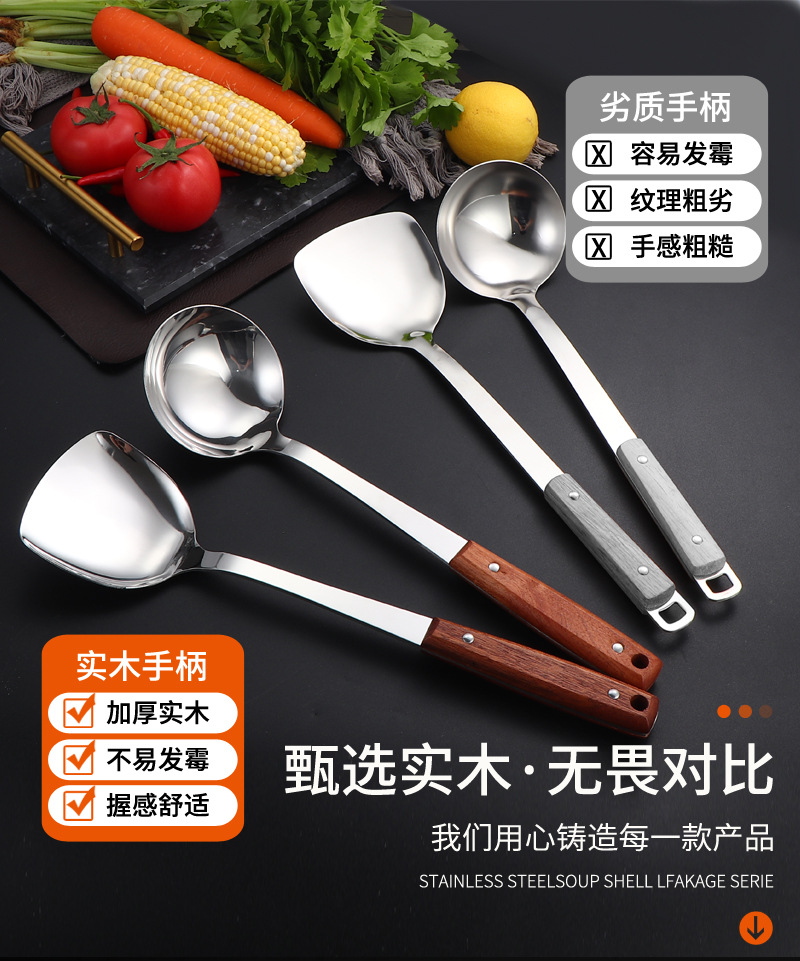 | Tamaño | Mango de madera engrosado [pala de olla], mango de madera engrosado [cuchara de sopa] |