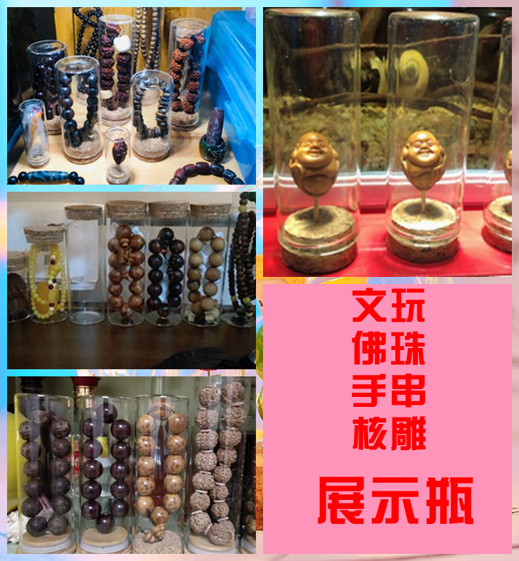 Wenwan pantalla sellada pulsera de botella cuentas de Buda a prueba de polvo frasco de almacenamiento de vidrio Pantalla de almacenamiento sellado frasco de almacenamiento transparente