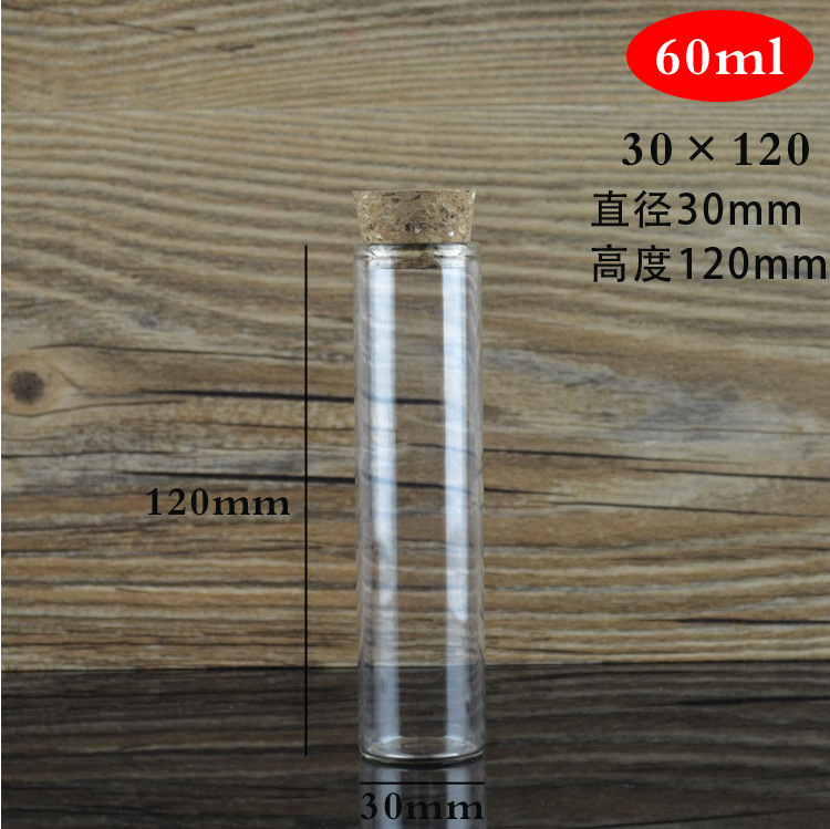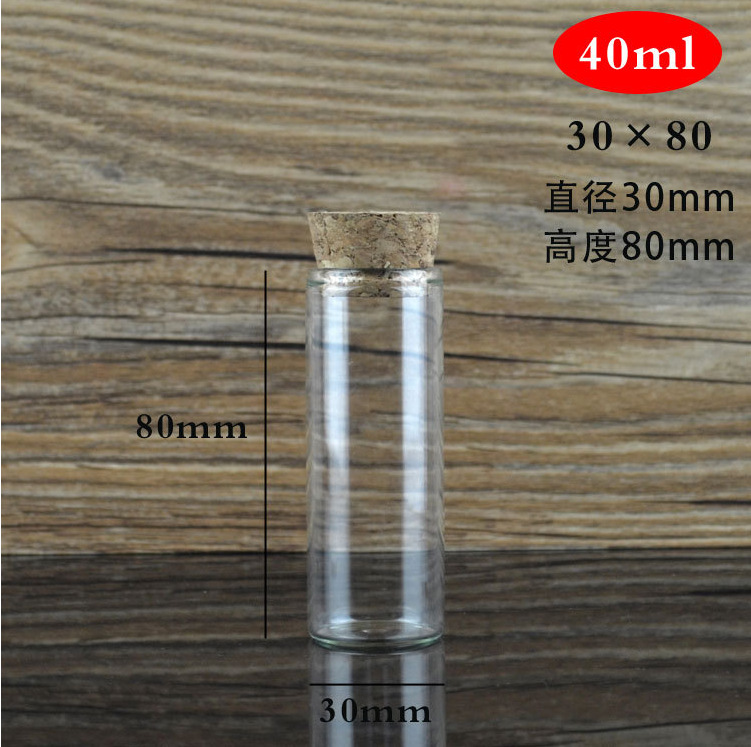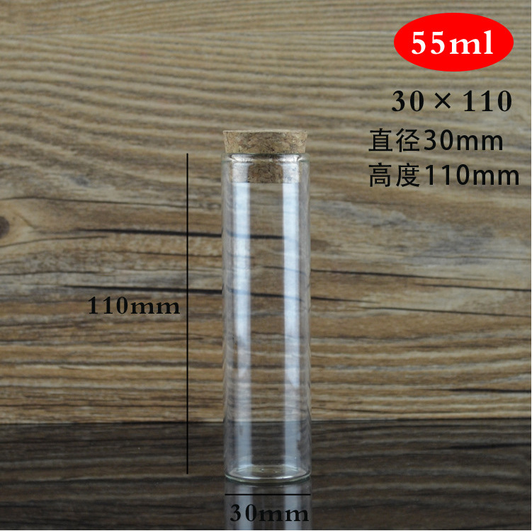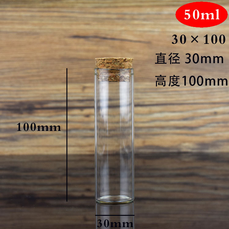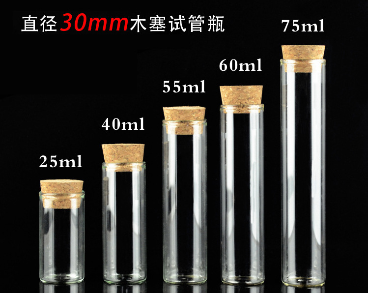 Transparente vidrio borosilicato 30mm corcho sellado tubo de ensayo botella caramelo perfumado té cápsula control cubeta al por mayor