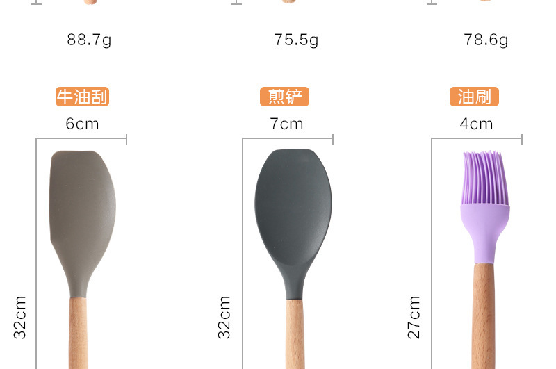 En stock tamaño pequeño integrado mango todo incluido cuchara de sopa de silicona olla antiadherente cáscara de sopa raspado cuchara de cocina utensilios de cocina vajilla