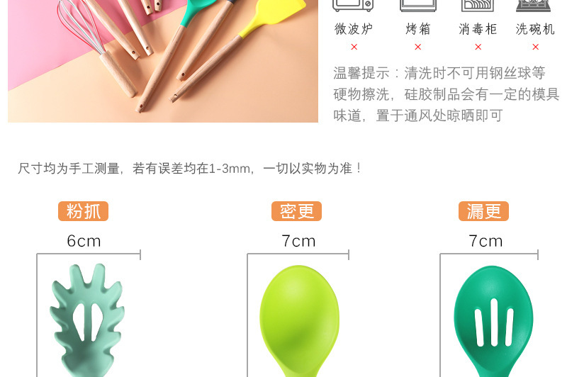 FDA manejo de madera de haya de silicona 12 piezas conjunto de paneles antiadherentes de fugas de paneles