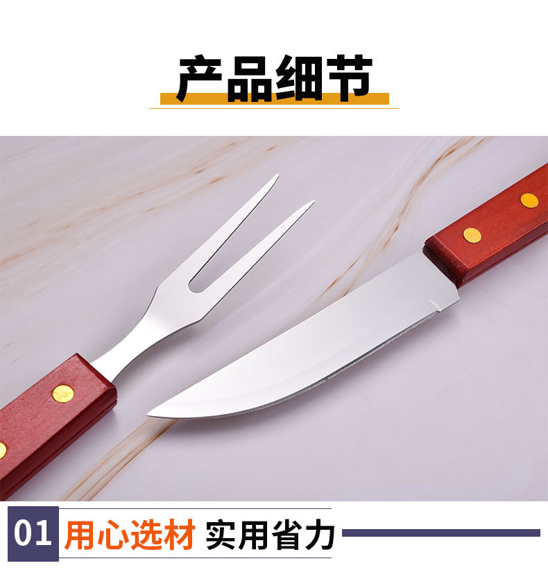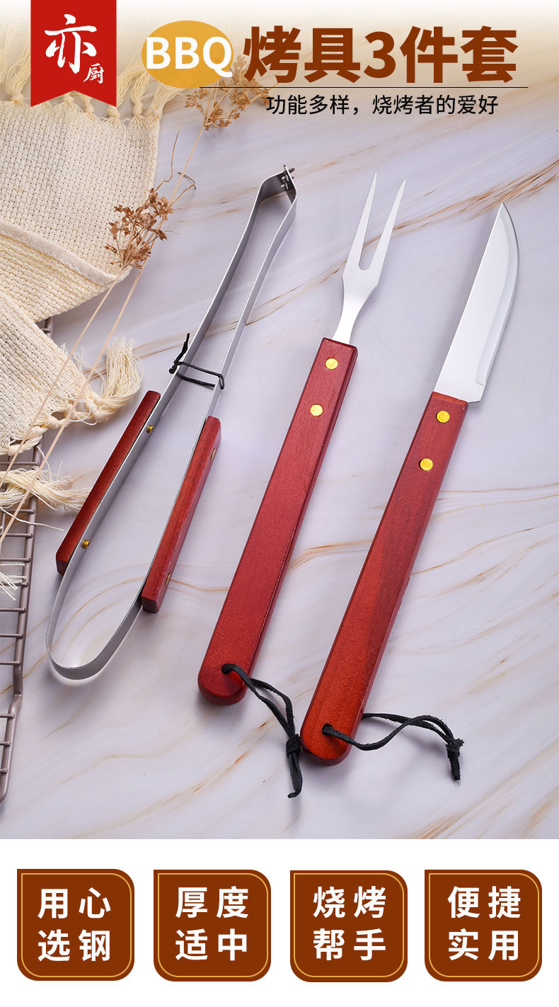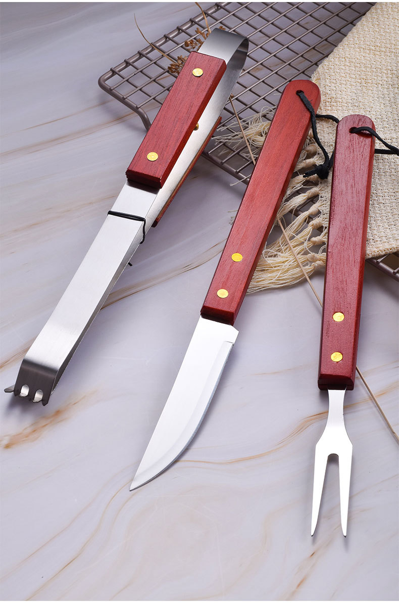 Exportación Amazon Barbacoas barbacoa herramientas mango de madera parrilla traje al aire libre camping picnic Acero inoxidable cuchillo tenedor pala clip