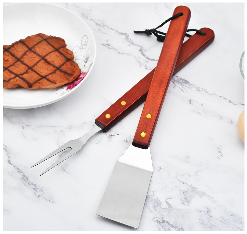 3 piezas de herramientas para el hogar de acero inoxidable de succión de tarjeta de parrilla de madera de horquilla de parrilla de horquilla de parrilla de barbecue