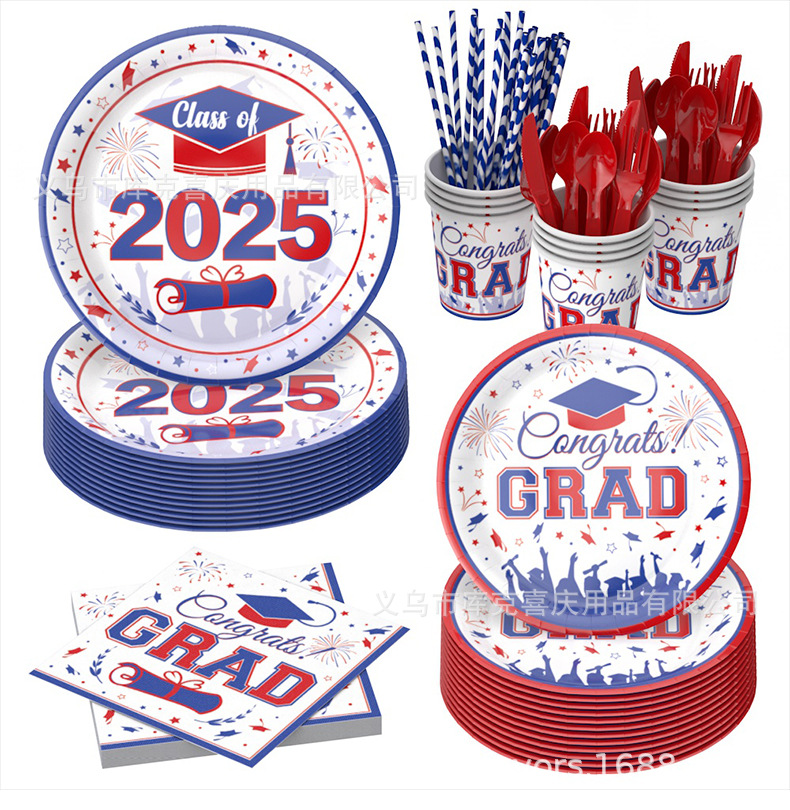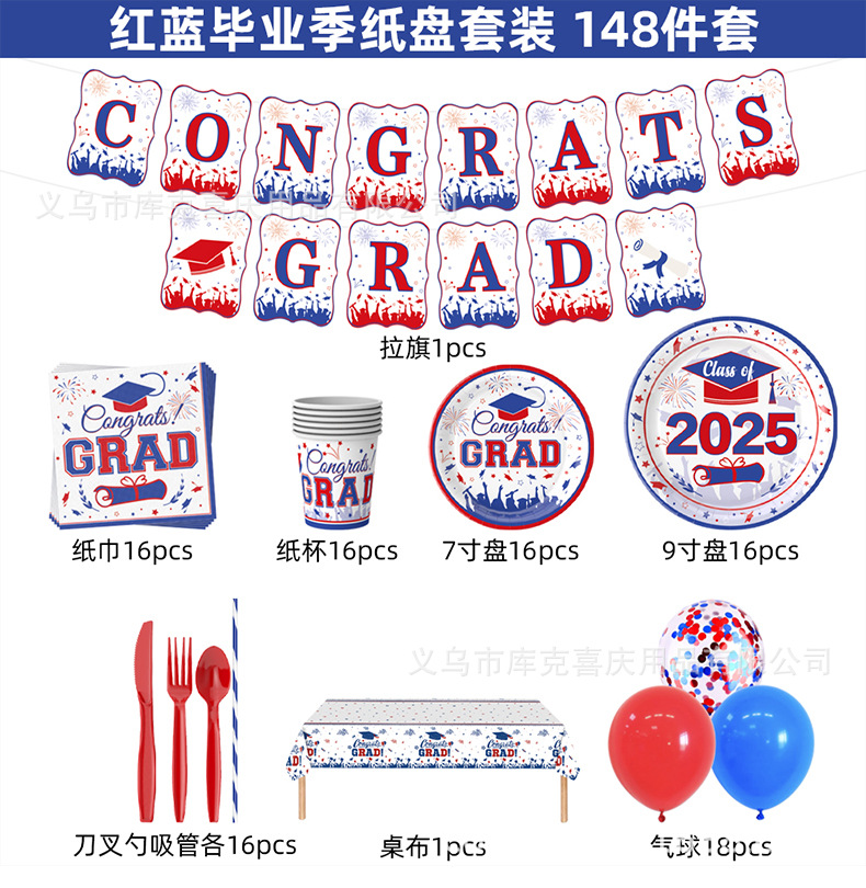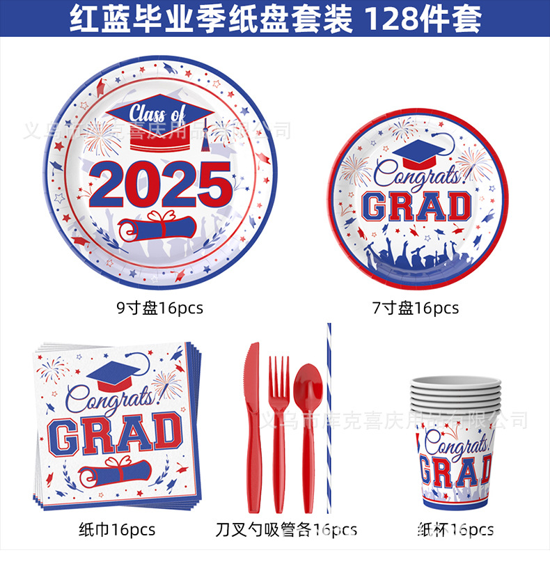 | Tamaño | 148 juegos de decoración de platos de papel de la temporada de graduación rojo y azul, 128 juegos de platos de papel de la temporada de graduación rojo y azul, 96 platos de papel de la temporada de graduación, tirar de la bandera |