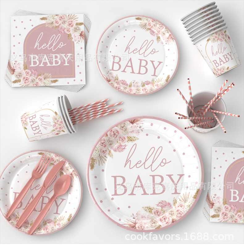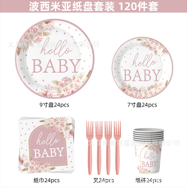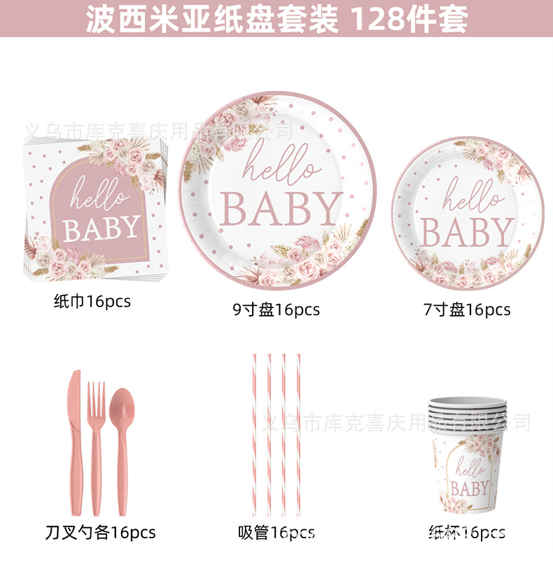 | Tamaño | Juego de bandeja de papel de fiesta de bebé rosa de 128 piezas,120 piezas de bandeja de papel de bebé rosa,96 piezas de bandeja de papel de bebé rosa |