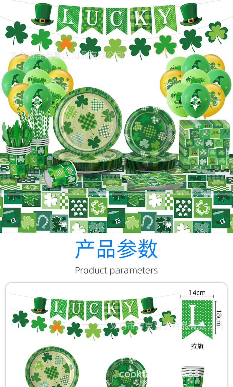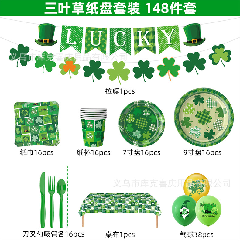 | Tamaño | 150 piezas, 128 juegos de bandejas de papel de fiesta de trébol, 96 bandejas de papel de trébol, tirar de la bandera |