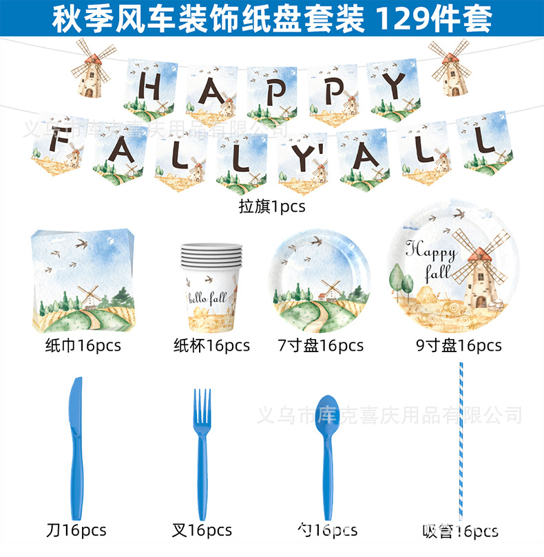| Tamaño | 129 piezas de juego de platos decorativos de otoño,Juego de bandeja de papel de otoño de 180 piezas,96 piezas de papel de otoño,Tirar de la bandera |