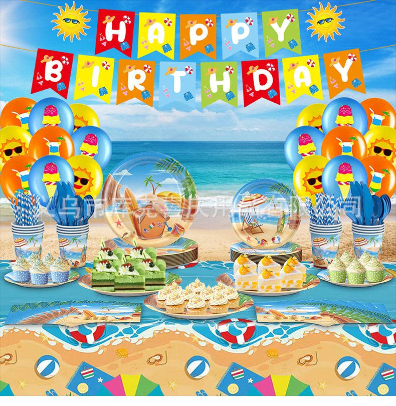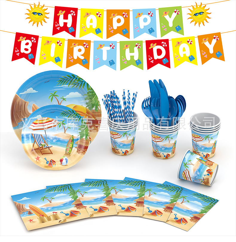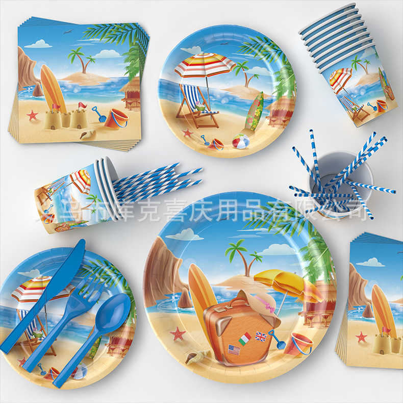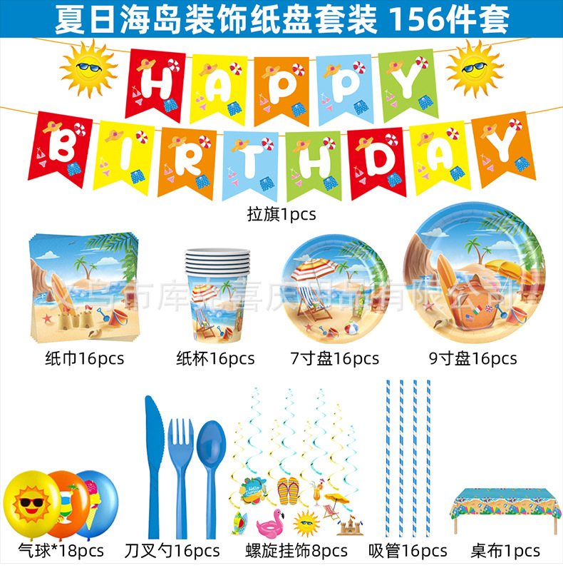 | Tamaño | Juego de bandeja de papel con tema de playa de 129 piezas,Juego de decoración de bandeja de papel temático de playa de 156 piezas,Tirar de la bandera |