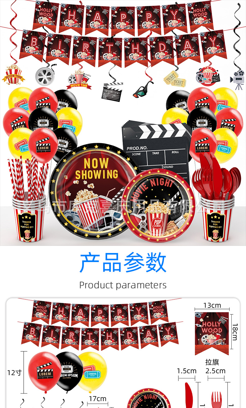 | Tamaño | 128 piezas de decoración de bandeja de papel de fiesta temática de película,155 piezas de decoración de bandeja de papel de fiesta temática de película,Tirar de la bandera,Espiral 8pcs |