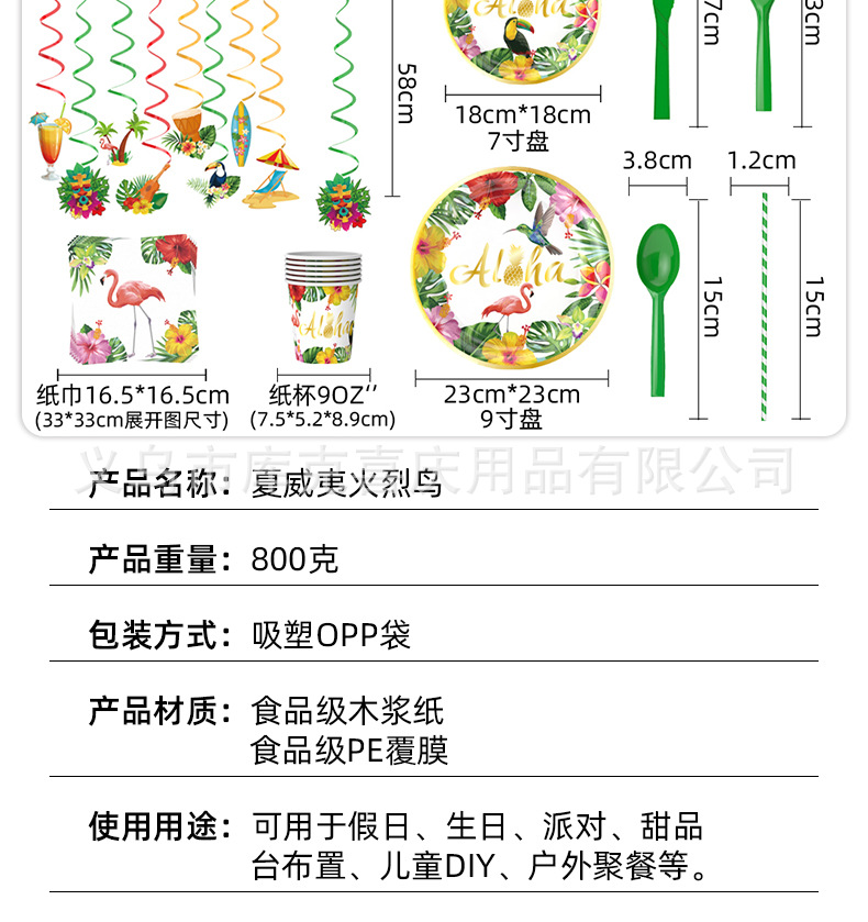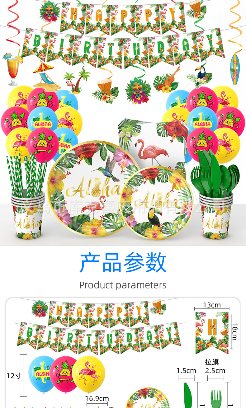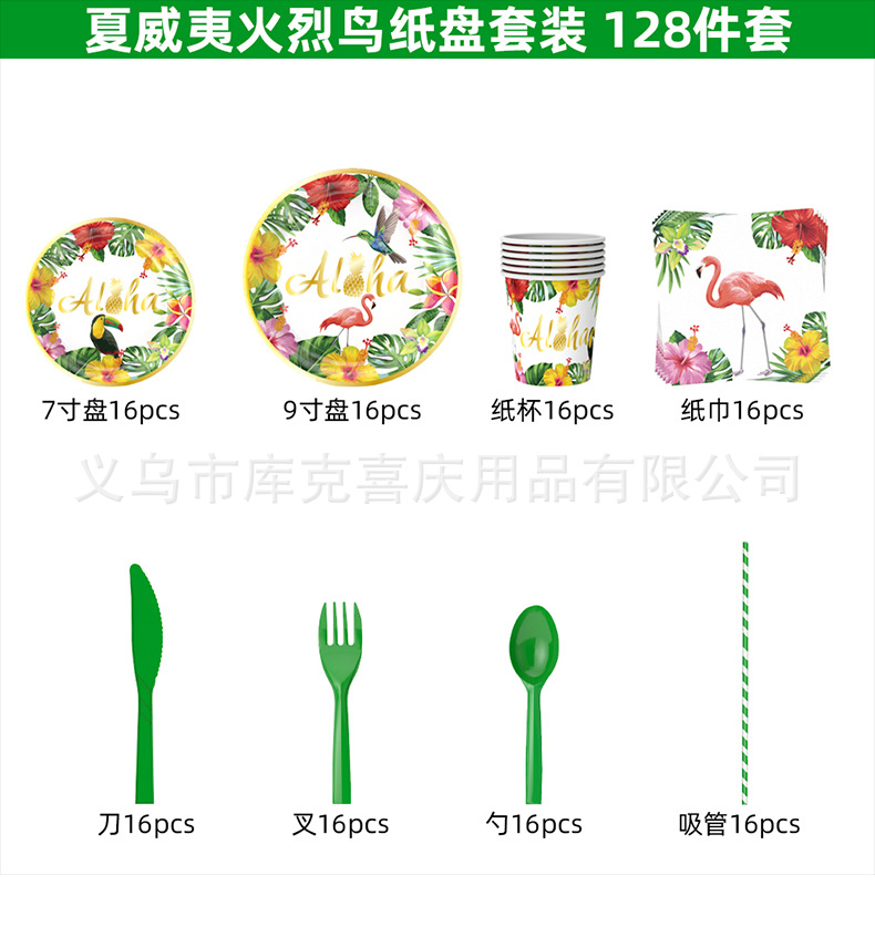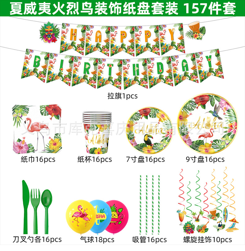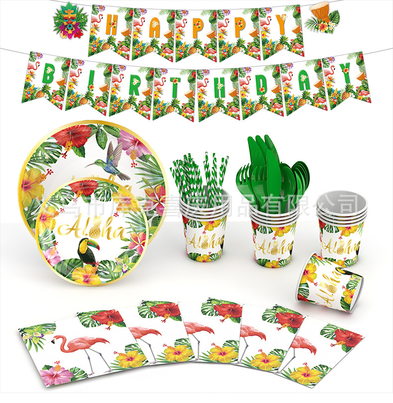 | Categoría | Juego de platos de fiesta hawaiana |