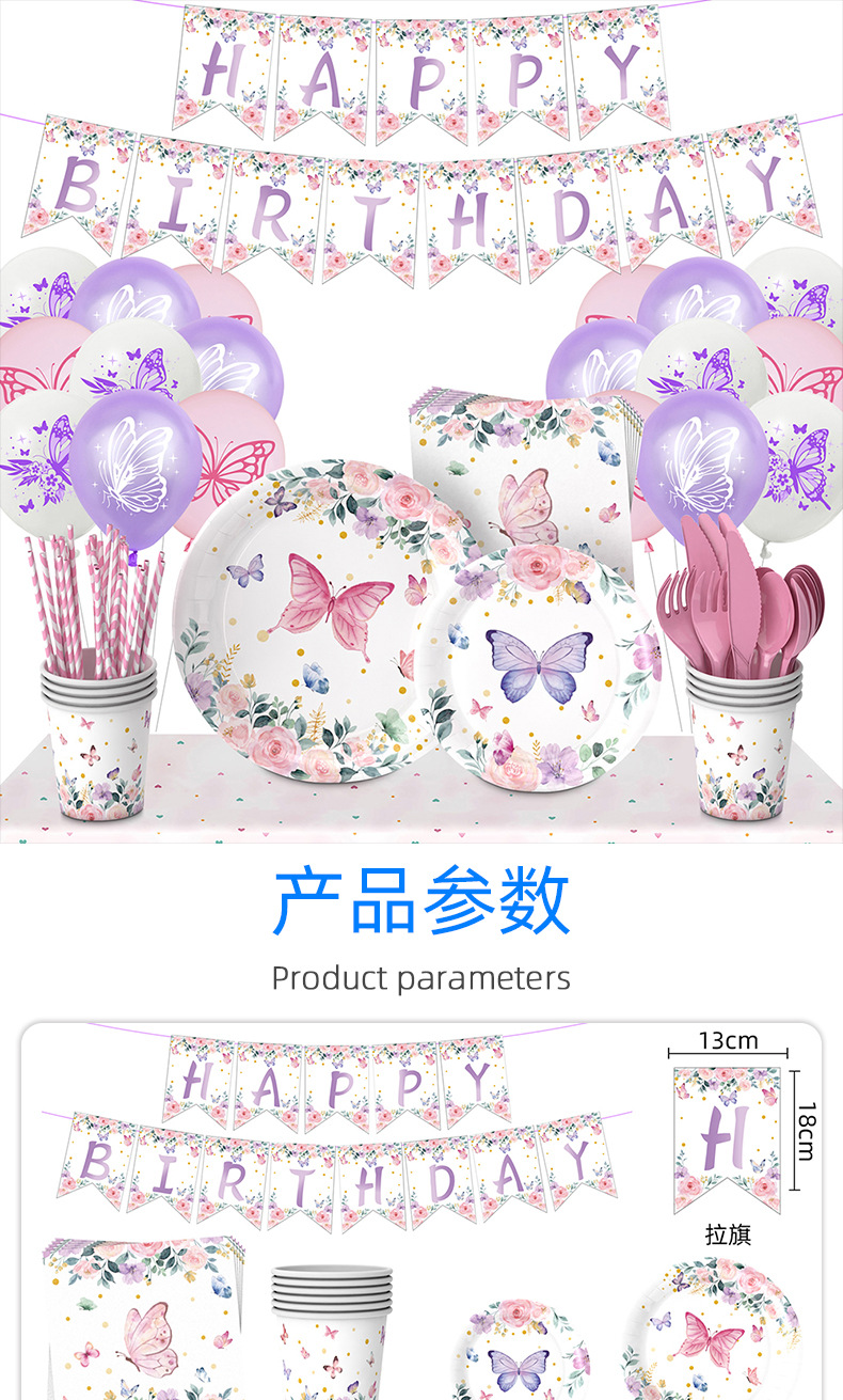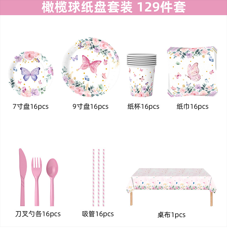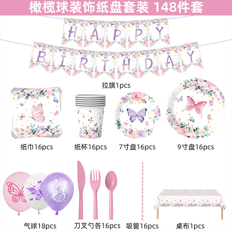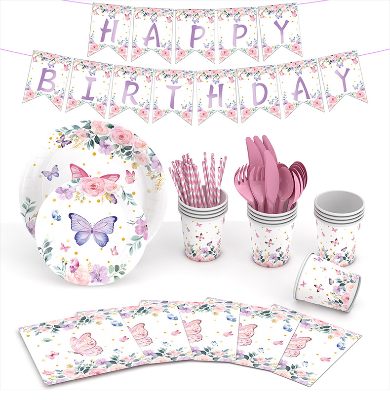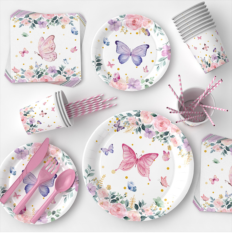 Nueva Flor de mariposa tema decoración del partido suministros fiesta de té Placa de papel desechable globo de tejido decoración traje