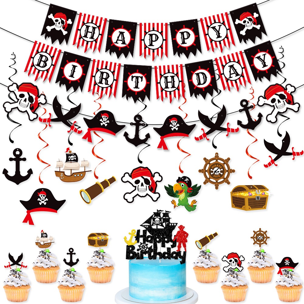 用途:海盗主题生日派对装饰,生日派对装饰卡通骷髅头套装,儿童生日聚会装饰用品。